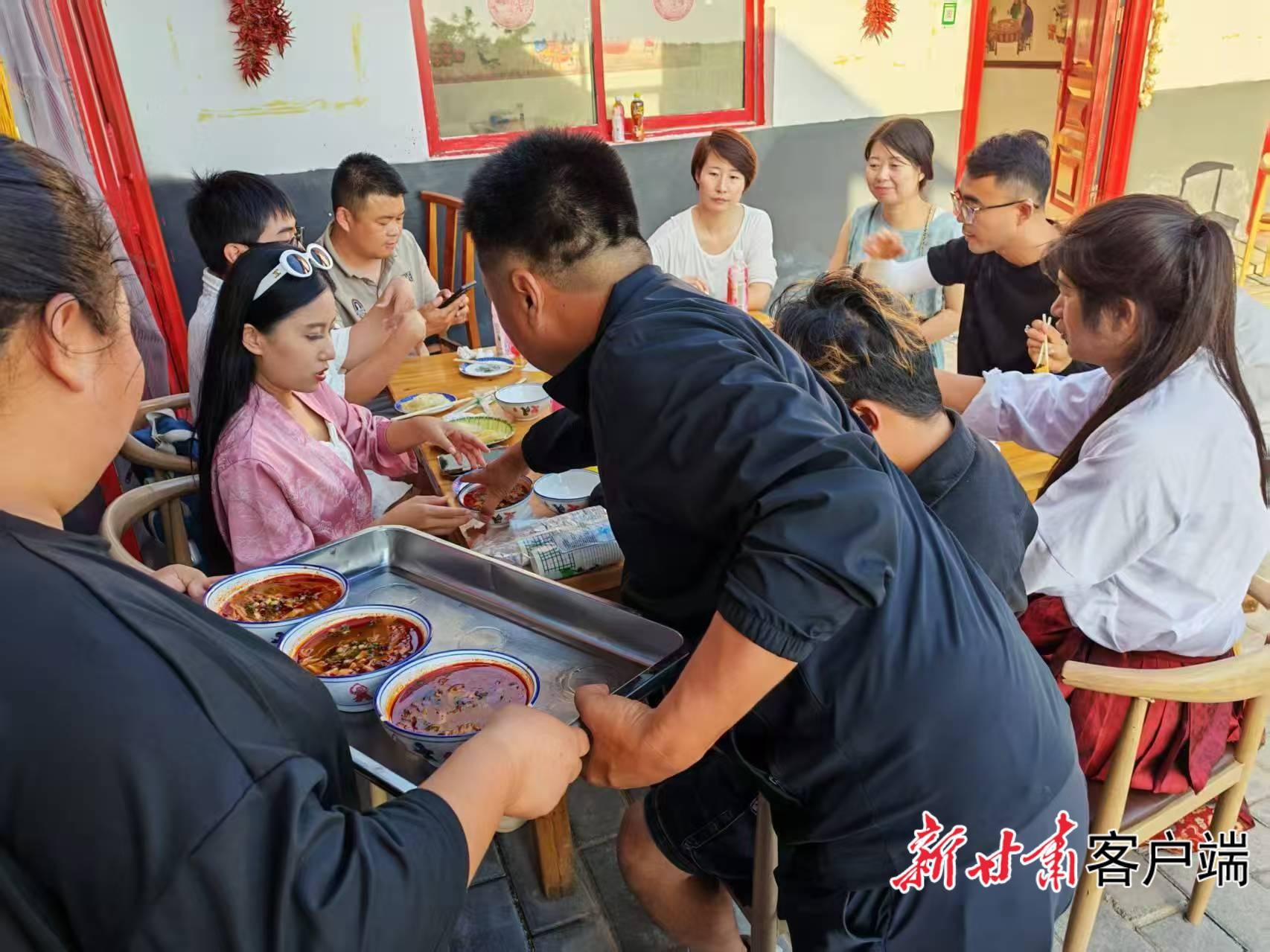 游客在農(nóng)家樂品嘗當(dāng)?shù)靥厣朗?。圖片由西坡鎮(zhèn)鎮(zhèn)政府提供