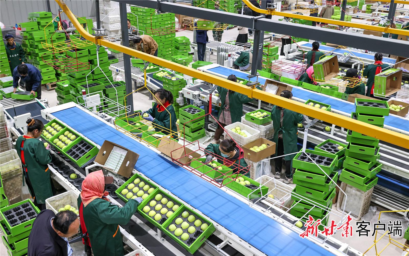 慶陽居立現(xiàn)代農(nóng)業(yè)發(fā)展有限責(zé)任公司蘋果自動化分揀車間。