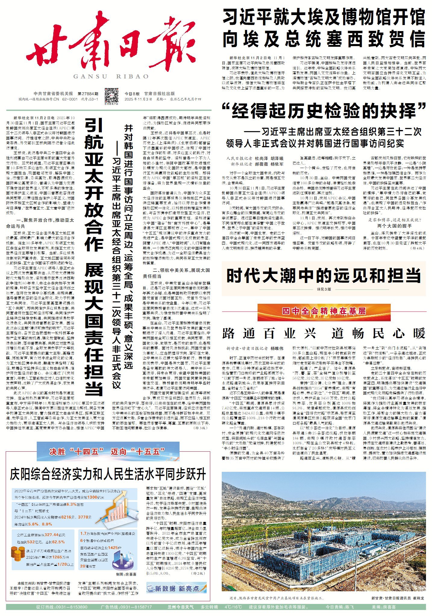 新甘肅客戶端蘭州10月31日訊(新甘肅·甘肅日報記者 王煜宇)記者從今天下午省政府新聞辦召開的“決勝收官‘十四五’ 爭先進位話發(fā)展”主題系列新聞發(fā)布會上獲悉,“十四五”時期,慶陽市全面落實省委、省政府提出的“挑大梁、作標桿”工作要求和“五地”建設(shè)目標,圍繞“‘雙輪’驅(qū)動、‘三化’并進、‘四建’支撐,高質(zhì)量發(fā)展”總體思路,實現(xiàn)工業(yè)經(jīng)濟轉(zhuǎn)型升級,數(shù)字經(jīng)濟異軍突起,鄉(xiāng)村面貌煥然一新,發(fā)展條件持續(xù)改善,呈現(xiàn)出綜合經(jīng)濟實力和人民生活水平同步躍升的良好態(tài)勢。