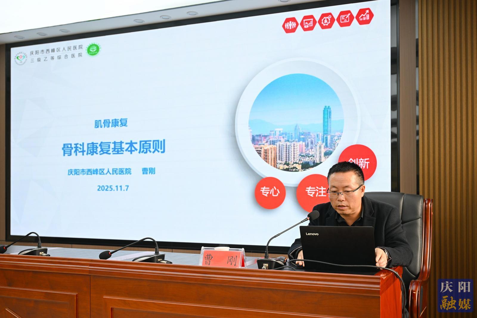 西峰區(qū)人民醫(yī)院副主任醫(yī)師曹剛作《骨科康復(fù)基本原則》培訓。