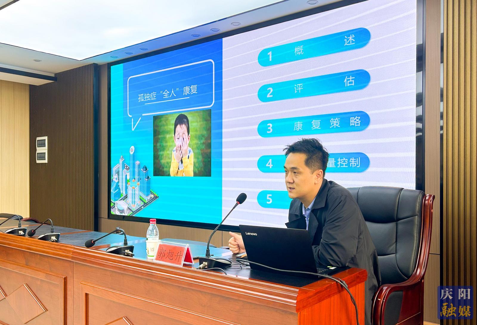 甘肅省康復(fù)中心醫(yī)院質(zhì)控中心秘書郭旭升作《孤獨癥兒童的評估及康復(fù)策略》培訓。