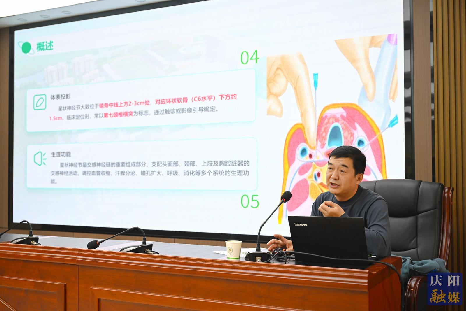 甘肅省康復(fù)中心醫(yī)院副主任醫(yī)師張云天作《超聲引導下星狀神經(jīng)節(jié)阻滯》培訓。