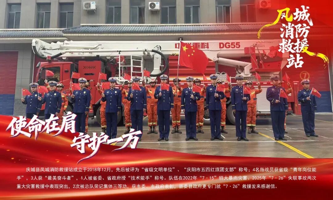2018年11月9日,習(xí)近平總書記向國家綜合性消防救援隊(duì)伍授旗并致訓(xùn)詞,為這支全新的人民隊(duì)伍指明前進(jìn)方向、注入強(qiáng)大力量。七年來,鳳城消防救援站始終將訓(xùn)詞精神深植于心、外化于行,牢牢錨定“扛紅旗、爭先進(jìn)、樹標(biāo)桿”的奮斗目標(biāo)。近年來,鳳城消防救援站榮獲縣級至省級文明單位,獲評“慶陽市五四紅旗團(tuán)支部”等稱號;4名消防救援人員獲省級“青年崗位能手”等榮譽(yù),3人獲評“最美奮斗者”等稱號,1人被省委、省政府授予技術(shù)能手稱號。在2022年“7·15”特大暴雨災(zāi)害、2025年“7·26”失聯(lián)事故救援中,隊(duì)伍表現(xiàn)突出,2次被總隊(duì)榮記集體三等功,獲市委、市政府表彰。