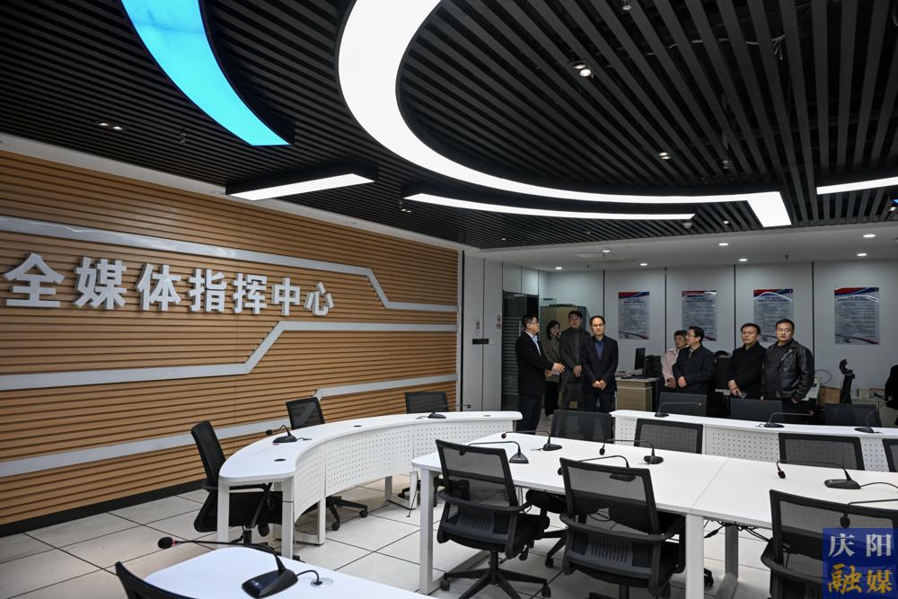 考察組實地參觀了慶陽市融媒體中心“中央廚房”指揮調(diào)度平臺、全媒體演播區(qū)及直播孵化基地等核心區(qū)域,詳細(xì)了解其“大部制”改革成效、“五位一體”管理體系構(gòu)建,以及“掌中慶陽”客戶端政務(wù)民生服務(wù)融合、直播電商助力地方產(chǎn)業(yè)發(fā)展等創(chuàng)新實踐。座談會上,慶陽市融媒體中心分享了市縣融媒聯(lián)動采訪、全媒體內(nèi)容創(chuàng)作傳播的成功案例,重點介紹了其在榮獲省級以上融合發(fā)展獎項過程中的經(jīng)驗做法。