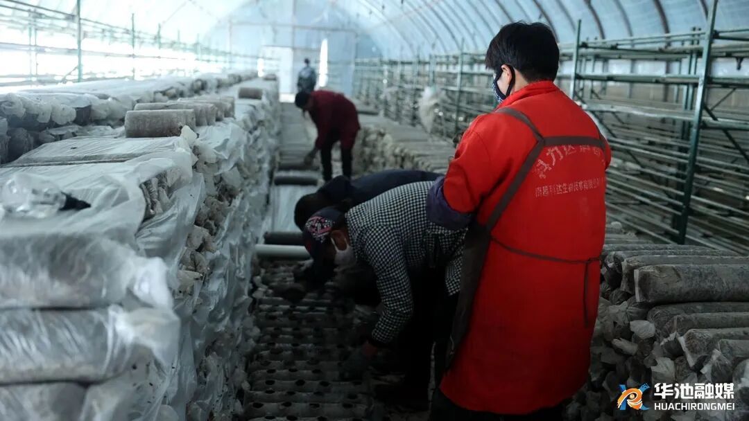 生產(chǎn)車間忙得火熱,種植大棚同樣干勁十足。在山莊鄉(xiāng)白溝香菇種植基地,一座座溫室大棚整齊排列,工人們分工協(xié)作、默契配合,有的搬運菌棒、有的打孔定植、有的鋪設(shè)薄膜,指尖翻飛間,一根根優(yōu)質(zhì)菌棒在大棚內(nèi)“安家落戶”。
