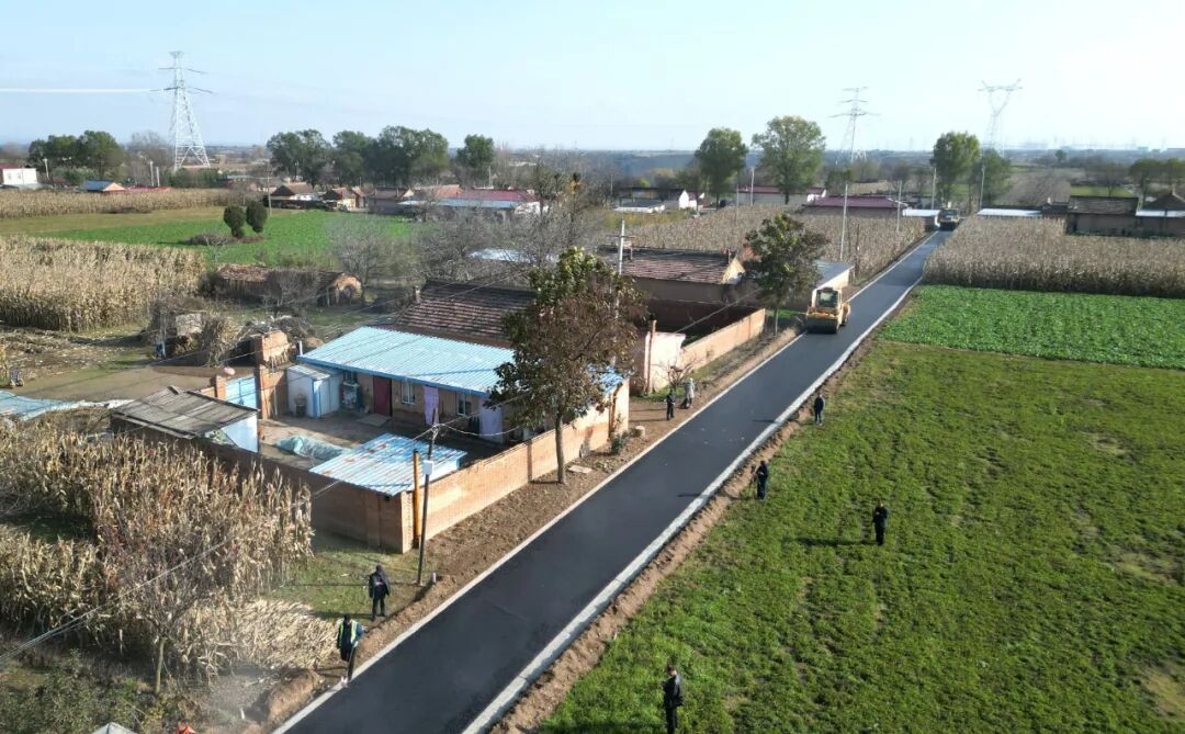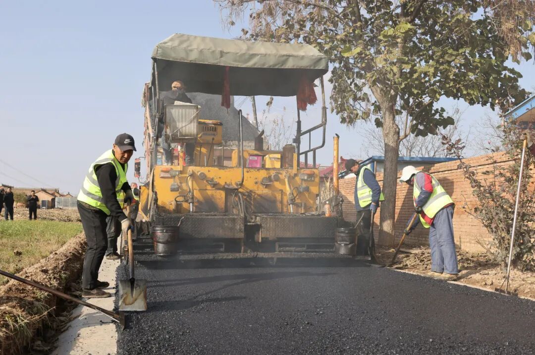 在什社鄉(xiāng)新興村道路提質(zhì)改造項(xiàng)目現(xiàn)場(chǎng),攤鋪機(jī)勻速前行,均勻鋪設(shè)著瀝青;壓路機(jī)緊隨其后,來(lái)回壓實(shí)新路面;運(yùn)料車(chē)有序穿梭,保障材料供應(yīng)。工人們則忙著平整路面、修整邊角,機(jī)械的轟鳴與忙碌的身影交織成一幅熱火朝天的建設(shè)圖景。
