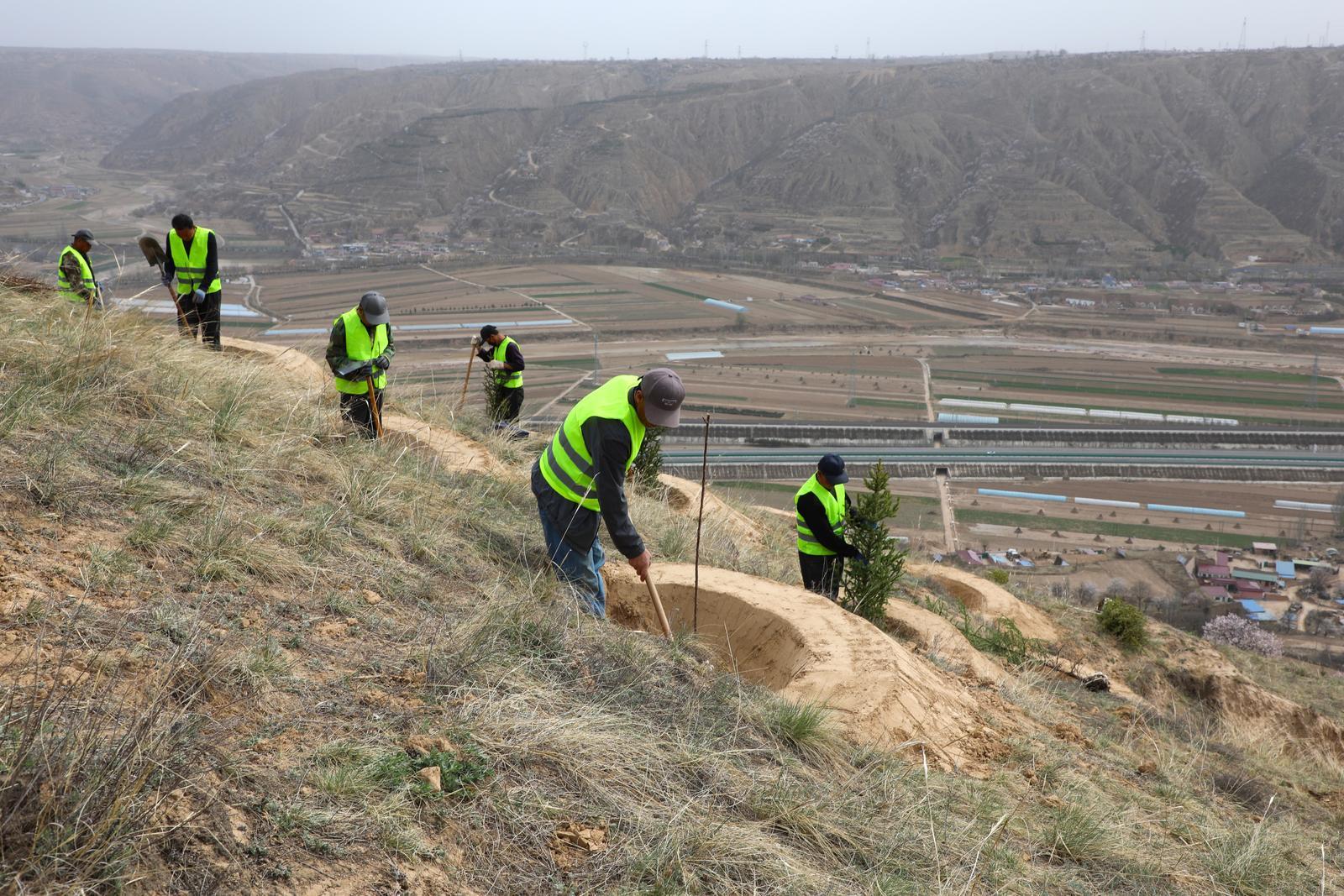 在甜水鎮(zhèn)的一片新造林區(qū),造林隊員李世梅正忙著挖樹畦栽苗,“今年我們這塊地主要栽植的是檸條和山桃,這些都是耐旱的品種,特別適合我們這里的氣候?!彼f,雖然工作辛苦,但看著一棵棵樹苗在曾經的光禿禿的山坡上扎下根,心里特別踏實。
