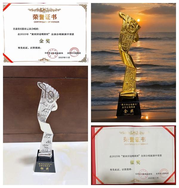 慶陽市音樂家協(xié)會推薦兩支優(yōu)秀合唱團(tuán)參加展演,與來自國內(nèi)外23支合唱團(tuán)同臺競技。經(jīng)過激烈角逐,慶陽市云朵合唱團(tuán)演唱的隴東民歌《繡金匾》《軍民大生產(chǎn)》獲金獎、民樂合唱團(tuán)演唱的《菊花臺》《愛永在》獲銀獎。