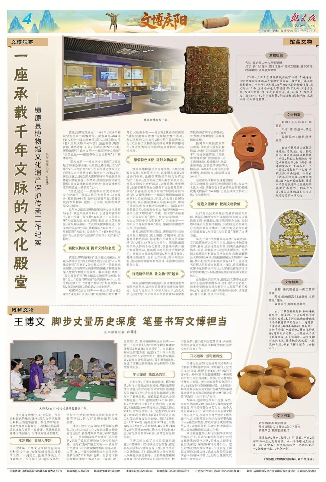 從文物普查的山野之間到學(xué)術(shù)研究的案頭之上,從展覽策劃的創(chuàng)新之舉到文化傳承的堅(jiān)守之路,王博文以腳步丈量歷史深度,用筆墨書寫文博擔(dān)當(dāng)。這份對事業(yè)的赤誠與執(zhí)著,不僅照亮了鎮(zhèn)原文博的發(fā)展之路,更成為激勵(lì)后輩接續(xù)奮斗的精神燈塔,讓文明之花在代代相傳中愈發(fā)絢爛。