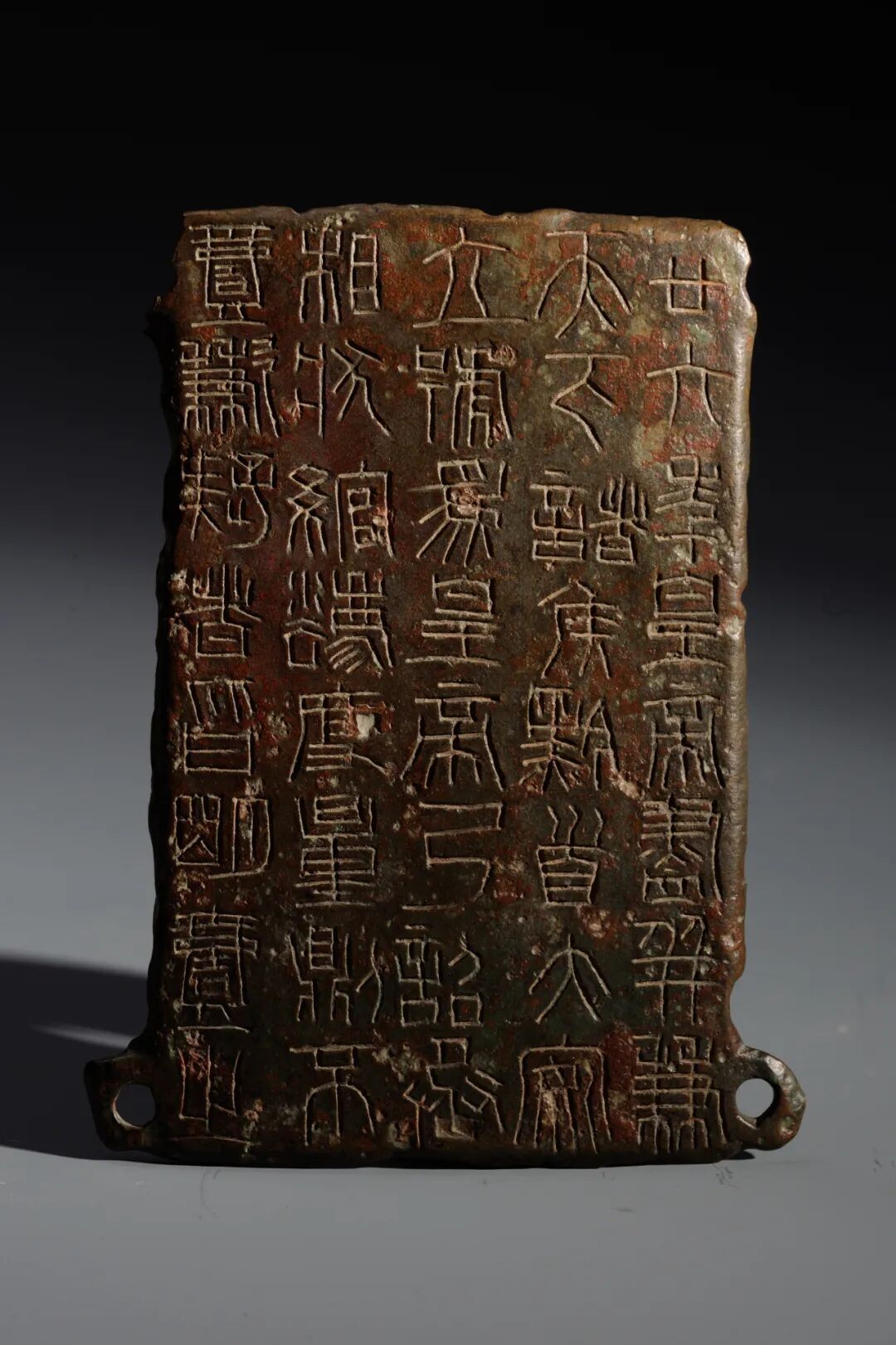 1976年4月出土于鎮(zhèn)原縣城關(guān)鎮(zhèn)富坪村,青銅鑄造,1996年被國家文物局專家組定為國家一級文物。其上陰刻秦始皇二十六年(公元前221年)統(tǒng)一度量衡的詔書,原文為:廿六年,皇帝盡并兼天下諸侯,黔首大安,立號(hào)為皇帝,乃詔臣相狀、綰,法度量則不壹,謙(嫌)疑者,皆明壹之。共5行40字,字體為秦篆,字跡清晰,線條纖細(xì),筆畫方折,刀刻痕跡明顯。