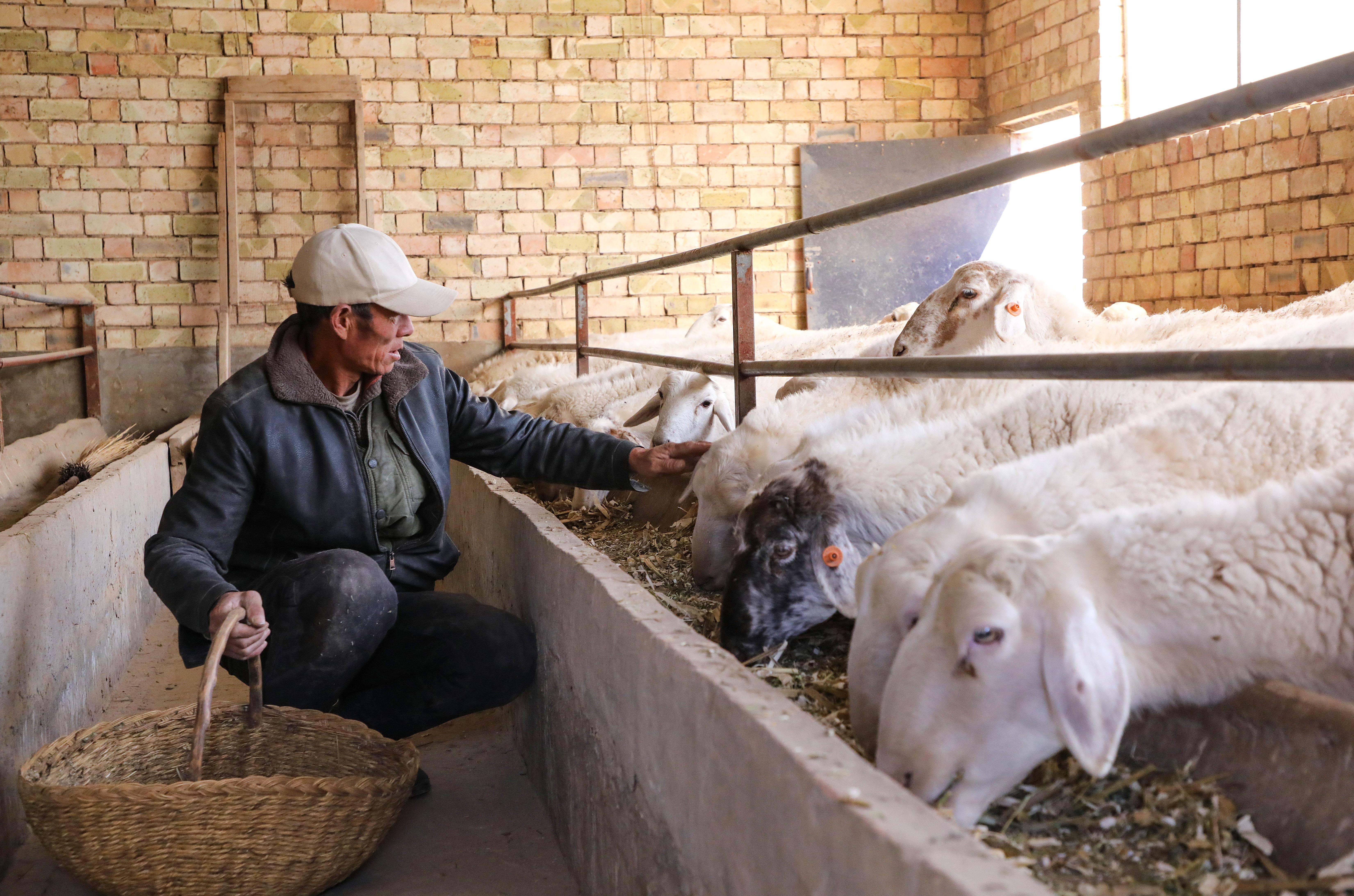 在政策扶持下,他蓋起150平方米羊棚和50平方米草棚,靠著政府投入的1只種公羊,再從村上合作社賒了10只母羊,正式踏上養(yǎng)羊路。