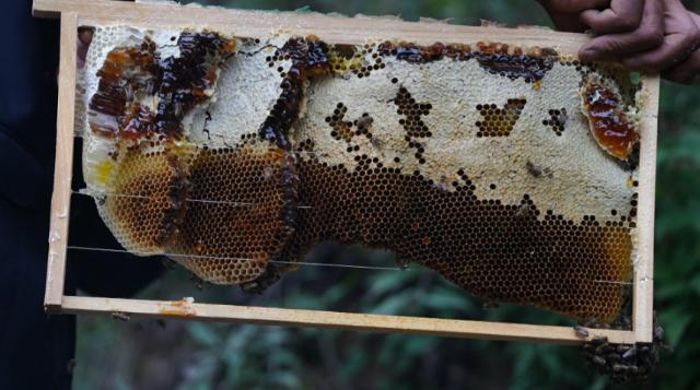 “咱們子午嶺的土蜂蜜比較好,蜜蜂采的是各種各樣的草花和樹上的花,天然無污染,最終產出的是百花蜜。我養(yǎng)了40-50箱蜜蜂,一年能收入四五萬元,比種地收入高。”太白鎮(zhèn)蓮花寺村村民高承喜說。