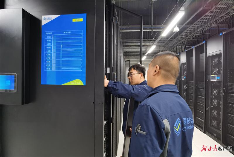 甘肅慶陽“東數(shù)西算”產(chǎn)業(yè)園區(qū)工作人員調(diào)試檢測設(shè)備。