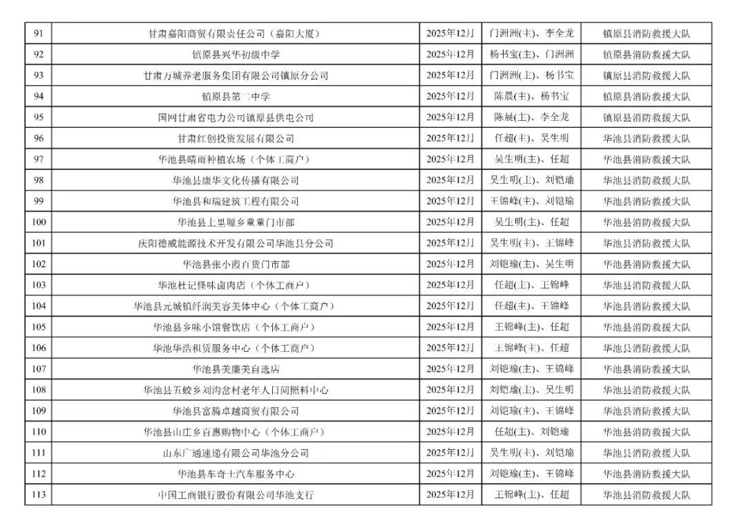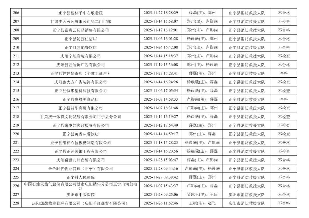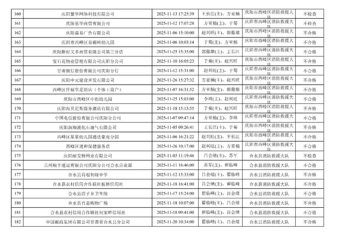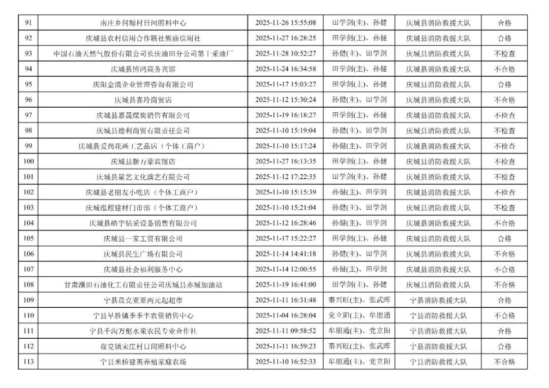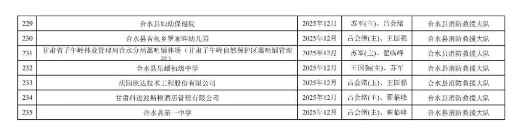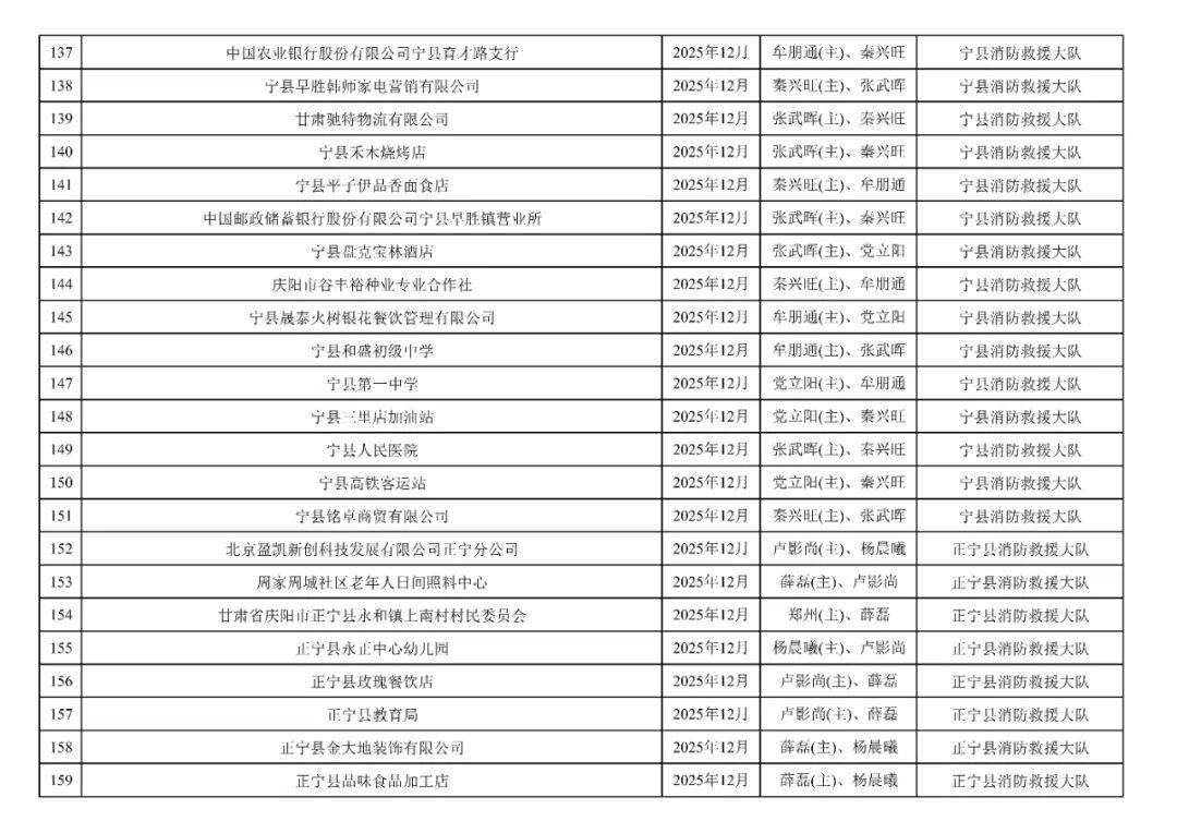 為貫徹落實《消防救援局關于全面推行“雙隨機、一公開”消防監(jiān)管工作的通知》(應急消〔2019〕241號),認真組織實施“雙隨機、一公開”消防監(jiān)管工作,現(xiàn)將2025年11月份“雙隨機、一公開”消防監(jiān)督檢查結果及12月份監(jiān)督抽查計劃公示如下: