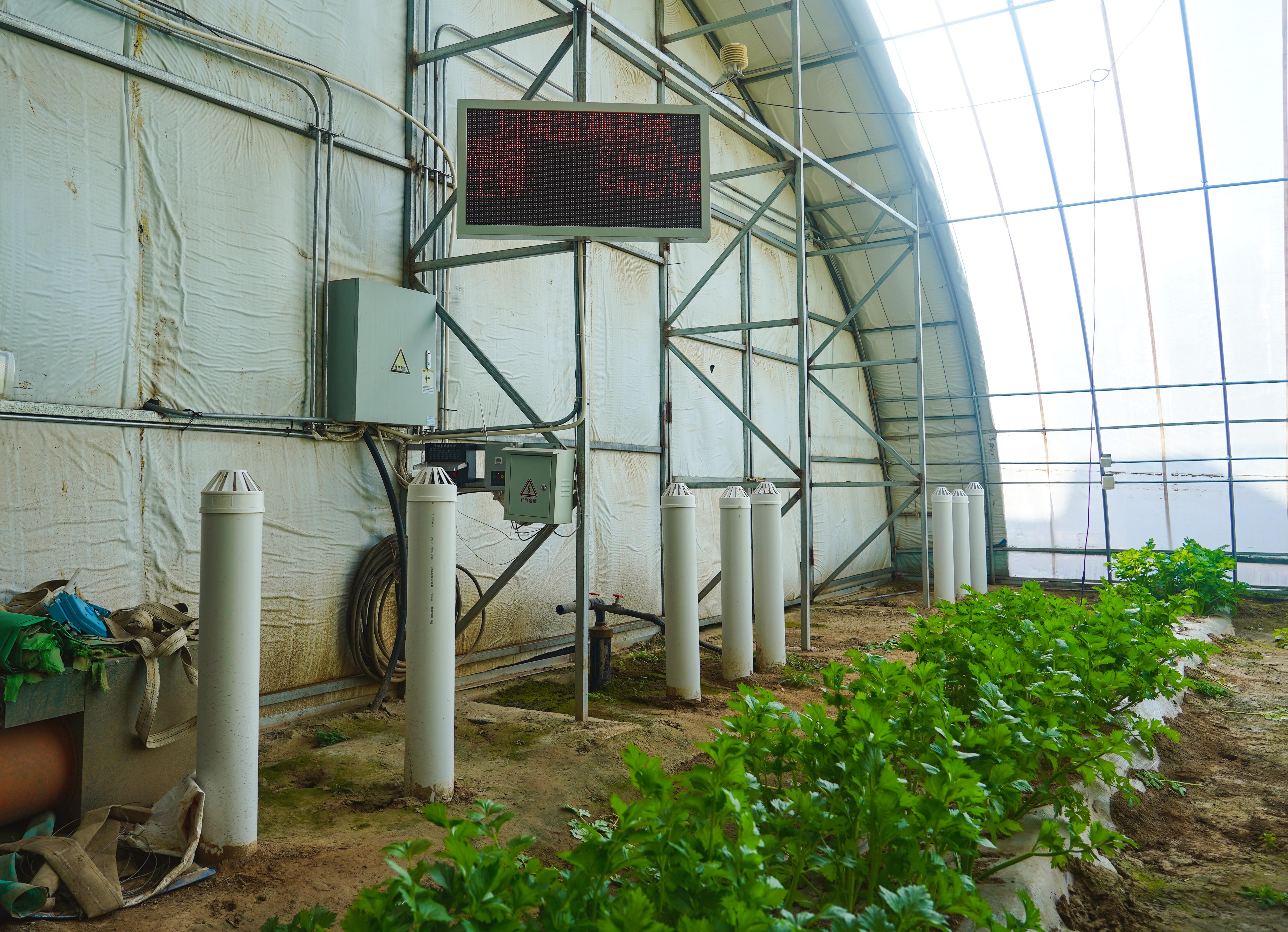 然而科技的力量在這里遠(yuǎn)不止于此?!霸蹅兠總€(gè)棚內(nèi)都配備有自動(dòng)環(huán)境檢測(cè)系統(tǒng),24小時(shí)不間斷監(jiān)測(cè)大棚內(nèi)的環(huán)境數(shù)據(jù)……”隨著園內(nèi)工作人員的指引,只見(jiàn)棚內(nèi)裝配的電子屏幕上實(shí)時(shí)顯示著棚內(nèi)溫度、濕度及土壤PH值等各類數(shù)據(jù),如同一位貼心的“健康管家”,為種植管理提供精準(zhǔn)的科學(xué)依據(jù)。