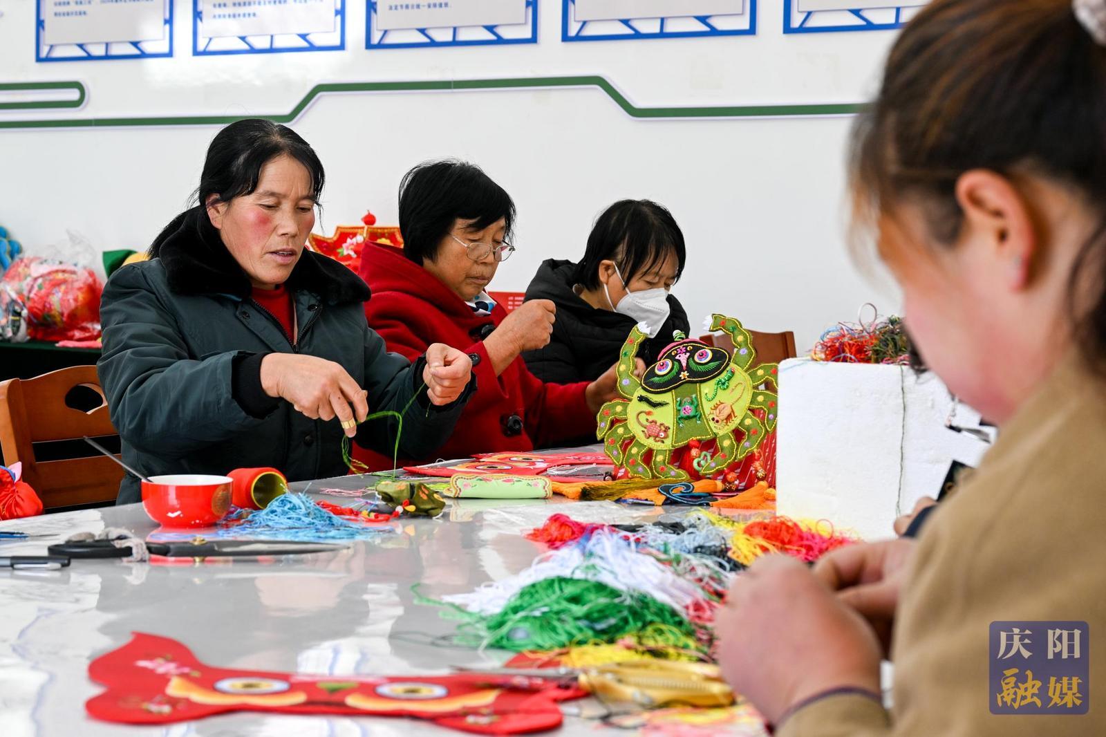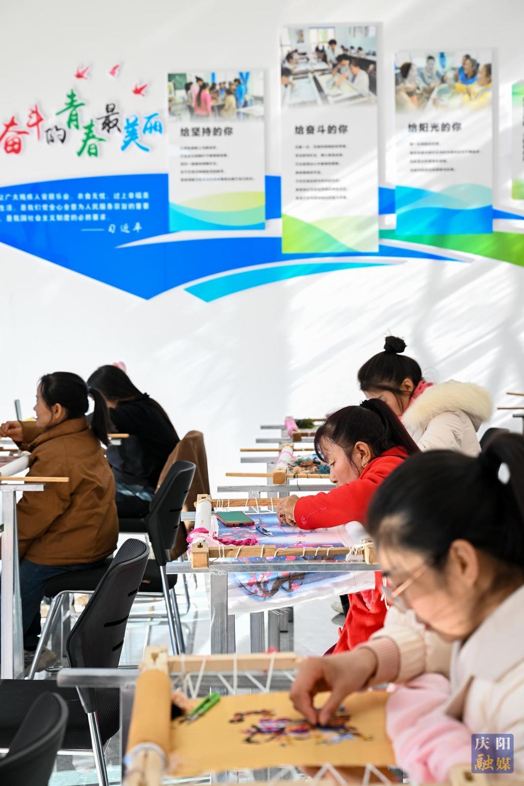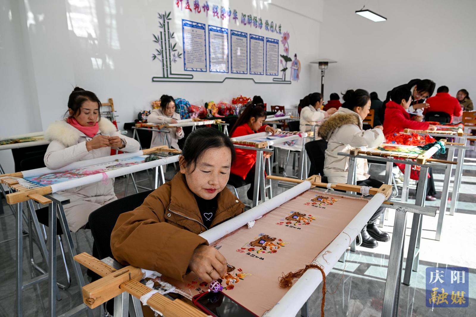 慶陽群英香包有限公司的繡娘們在繡制香包。