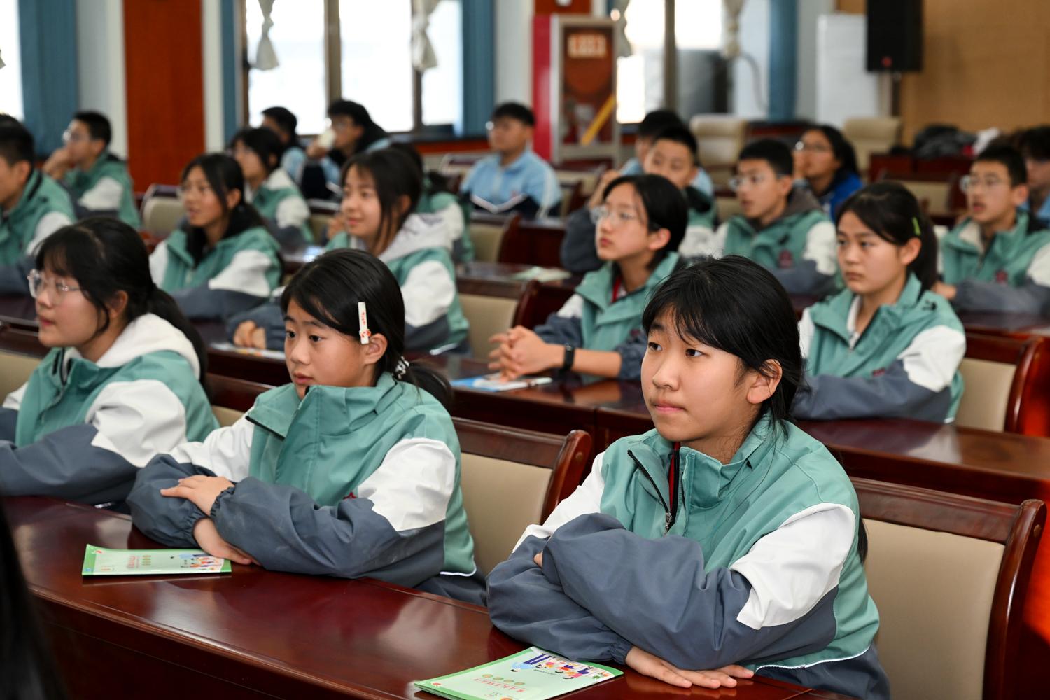 學(xué)生們認(rèn)真觀看和聆聽模擬庭審。