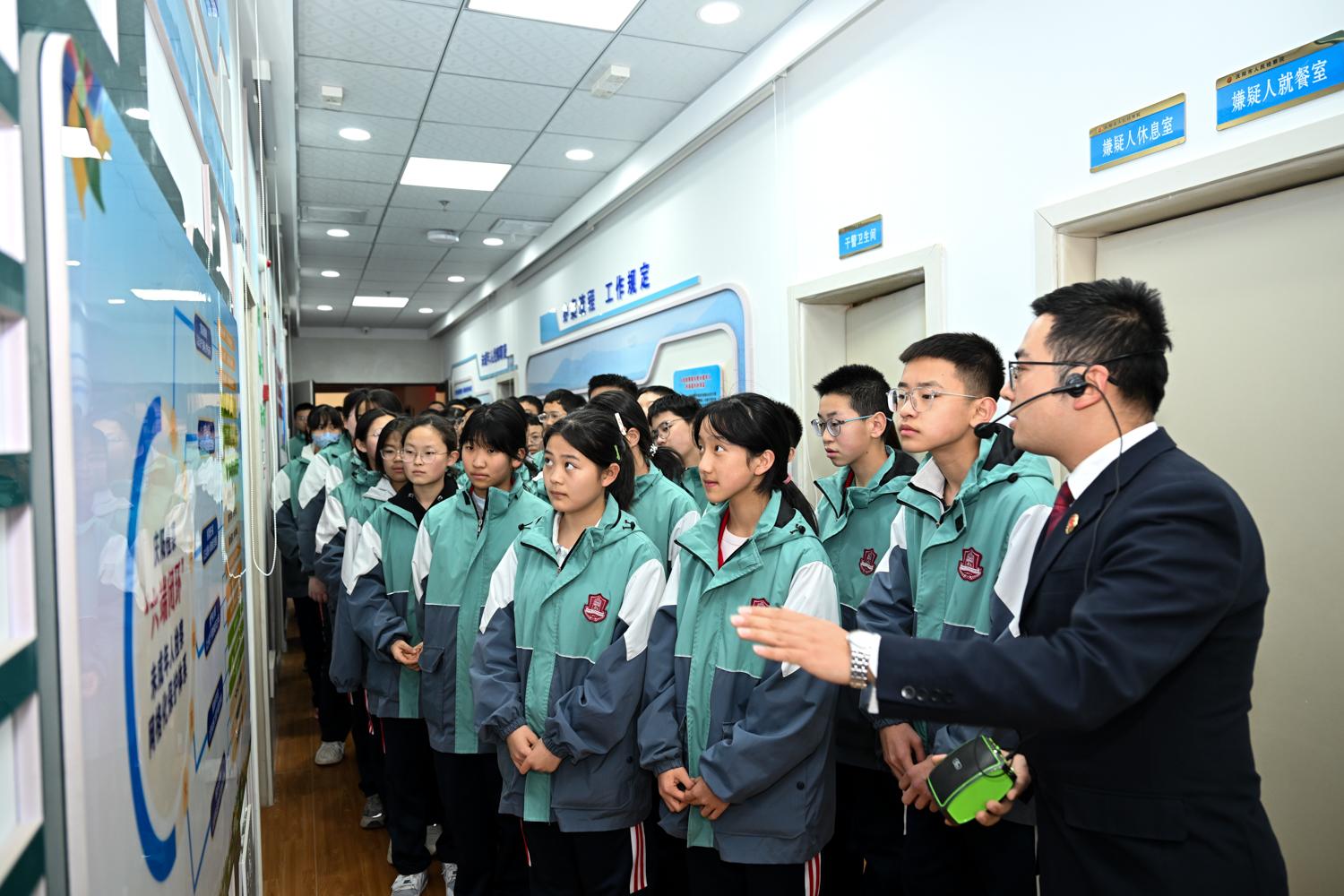 師生們參觀未成年人關(guān)愛教育中心法律認(rèn)知館。
