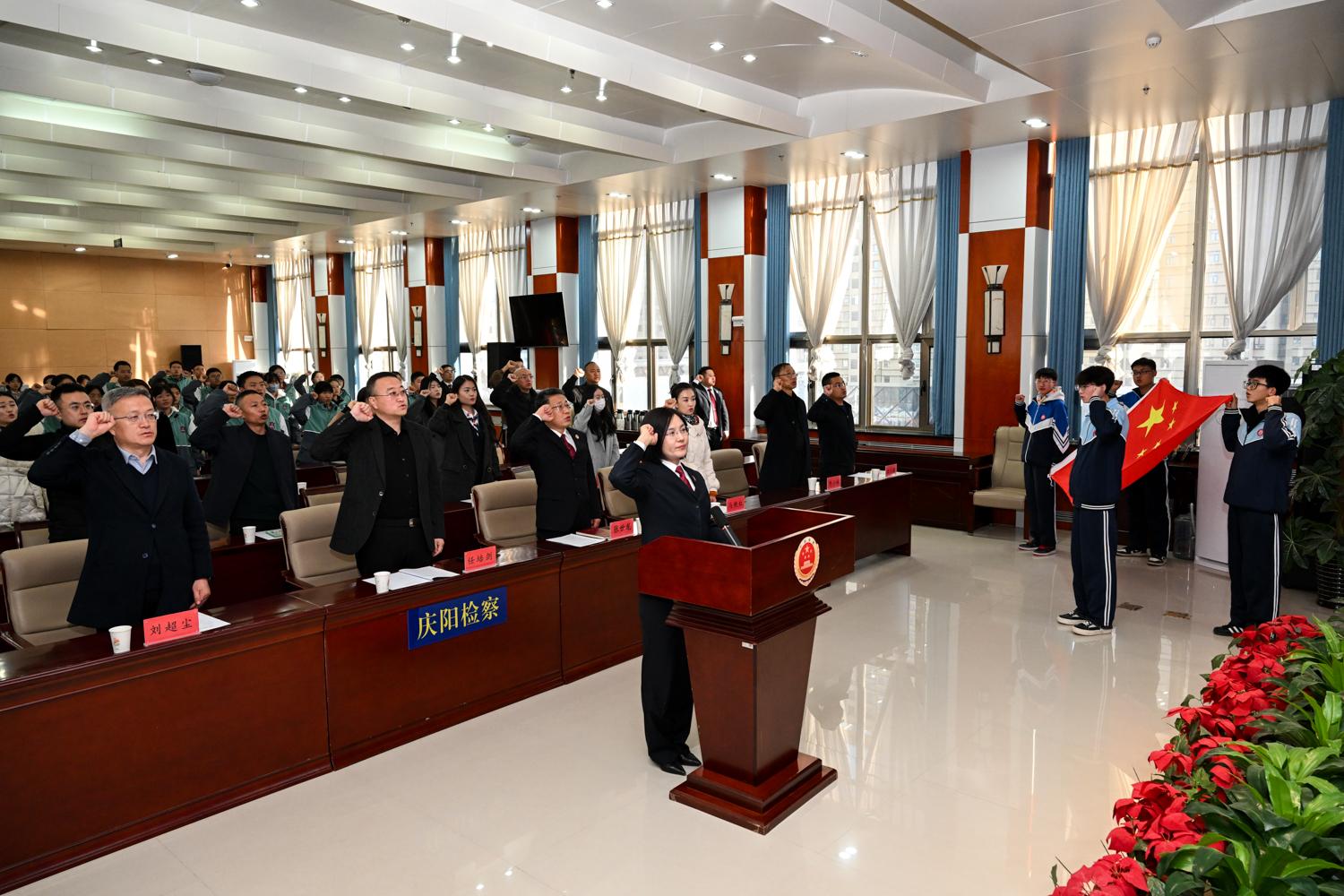 慶陽網(wǎng)訊(慶陽融媒記者 俄少飛)12月2日,由共青團慶陽市委、慶陽市人民檢察院、慶陽市教育局聯(lián)合主辦的“青春與法同行 成長與法相伴”青少年模擬法庭活動在慶陽市人民檢察院舉行。北師大慶陽實驗學(xué)校及慶陽市西峰區(qū)職業(yè)中等專業(yè)學(xué)校的數(shù)十名學(xué)生及家長代表走進檢察機關(guān),沉浸式接受法治教育。