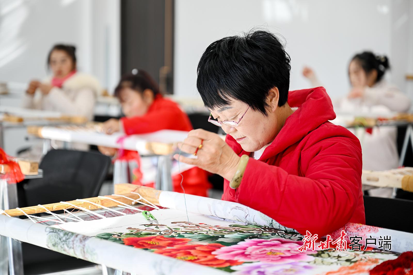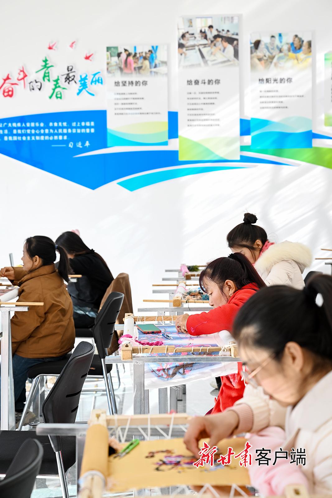 11月28日,慶陽群英香包公司內(nèi)的甘肅省殘疾人就業(yè)創(chuàng)業(yè)基地里,繡娘們在繡架前繡制工藝品。目前,該基地已穩(wěn)定吸納60余名殘疾人就業(yè),并帶動310余名居家婦女實現(xiàn)靈活就業(yè)。