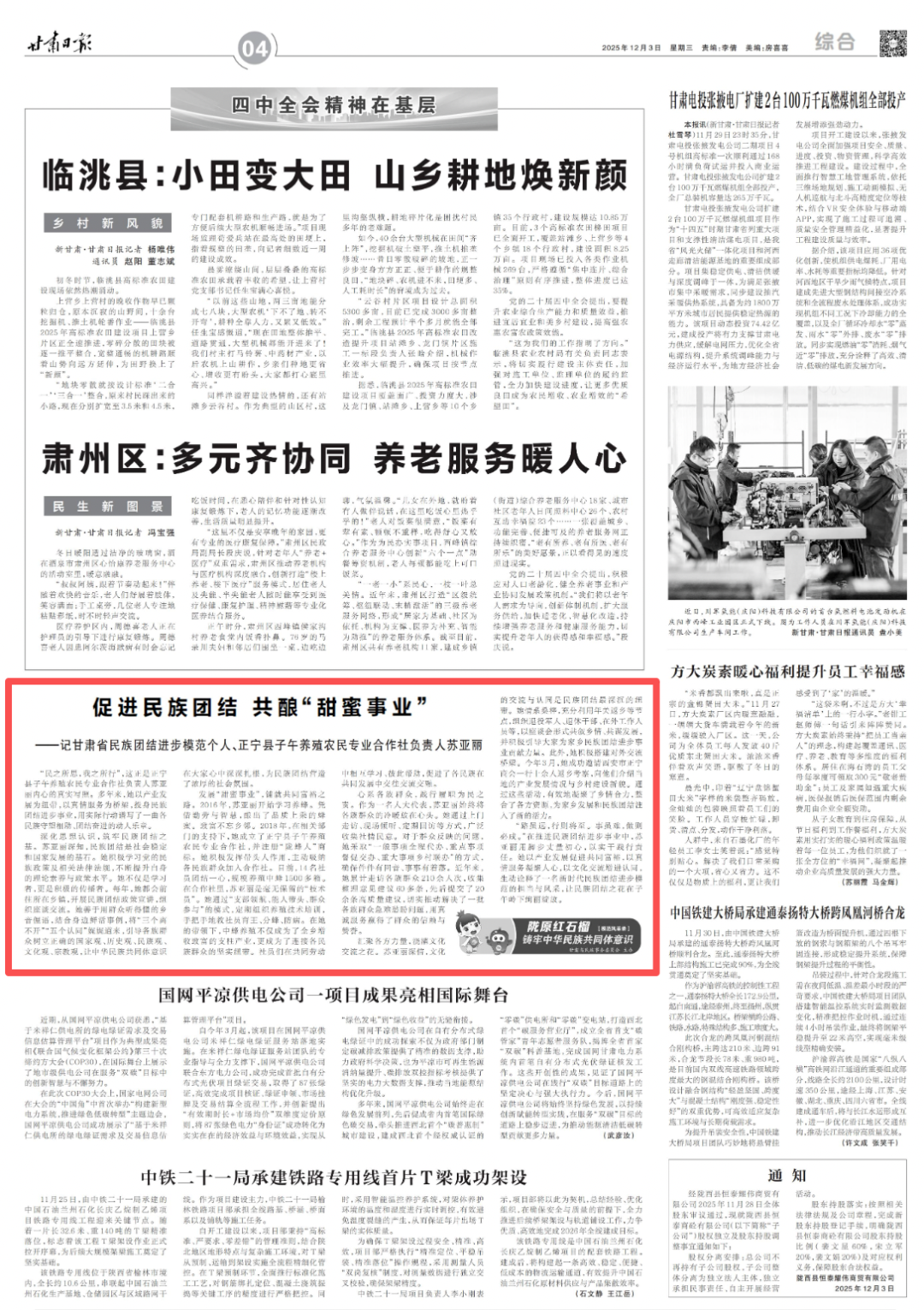 “路雖遠(yuǎn),行則將至。事雖難,做則必成?!痹谕七M(jìn)民族團(tuán)結(jié)進(jìn)步事業(yè)中,蘇亞麗用腳步丈量初心,以實(shí)干踐行責(zé)任。她以產(chǎn)業(yè)發(fā)展促進(jìn)共同富裕,以真情服務(wù)凝聚人心,以文化交流增進(jìn)認(rèn)同,生動(dòng)詮釋了一名新時(shí)代民族團(tuán)結(jié)進(jìn)步模范的擔(dān)當(dāng)與風(fēng)采,讓民族團(tuán)結(jié)之花在子午嶺下絢麗綻放。