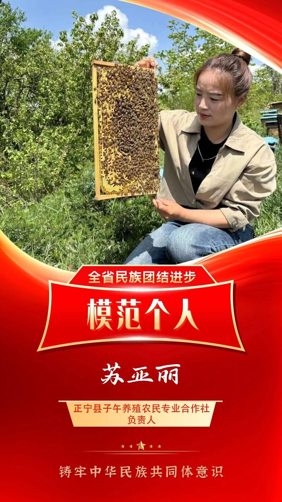 2016年,蘇亞麗開始學(xué)習(xí)養(yǎng)蜂。憑借勤勞與智慧,釀出了品質(zhì)上乘的蜂蜜。致富不忘鄉(xiāng)鄰。2018年,在相關(guān)部門的支持下,她成立了正寧縣子午養(yǎng)殖農(nóng)民專業(yè)合作社,并注冊(cè)“隴蜂人”商標(biāo)。她積極發(fā)揮帶頭人作用,主動(dòng)吸納各民族群眾加入合作社。目前,14名社員團(tuán)結(jié)一心,規(guī)模養(yǎng)殖中蜂1500多箱。在合作社里,蘇亞麗是毫無(wú)保留的“技術(shù)員”。她通過“支部領(lǐng)航、能人帶頭、群眾參與”的模式,定期組織養(yǎng)殖技術(shù)培訓(xùn),手把手地教社員育王、分蜂、防病。在她的帶領(lǐng)下,中蜂養(yǎng)殖不僅成為了全鄉(xiāng)增收致富的支柱產(chǎn)業(yè),更成為了連接各民族群眾的堅(jiān)實(shí)紐帶。社員們?cè)诠餐瑒趧?dòng)中相互學(xué)習(xí)、彼此幫助,促進(jìn)了各民族在共同發(fā)展中交往交流交融。
