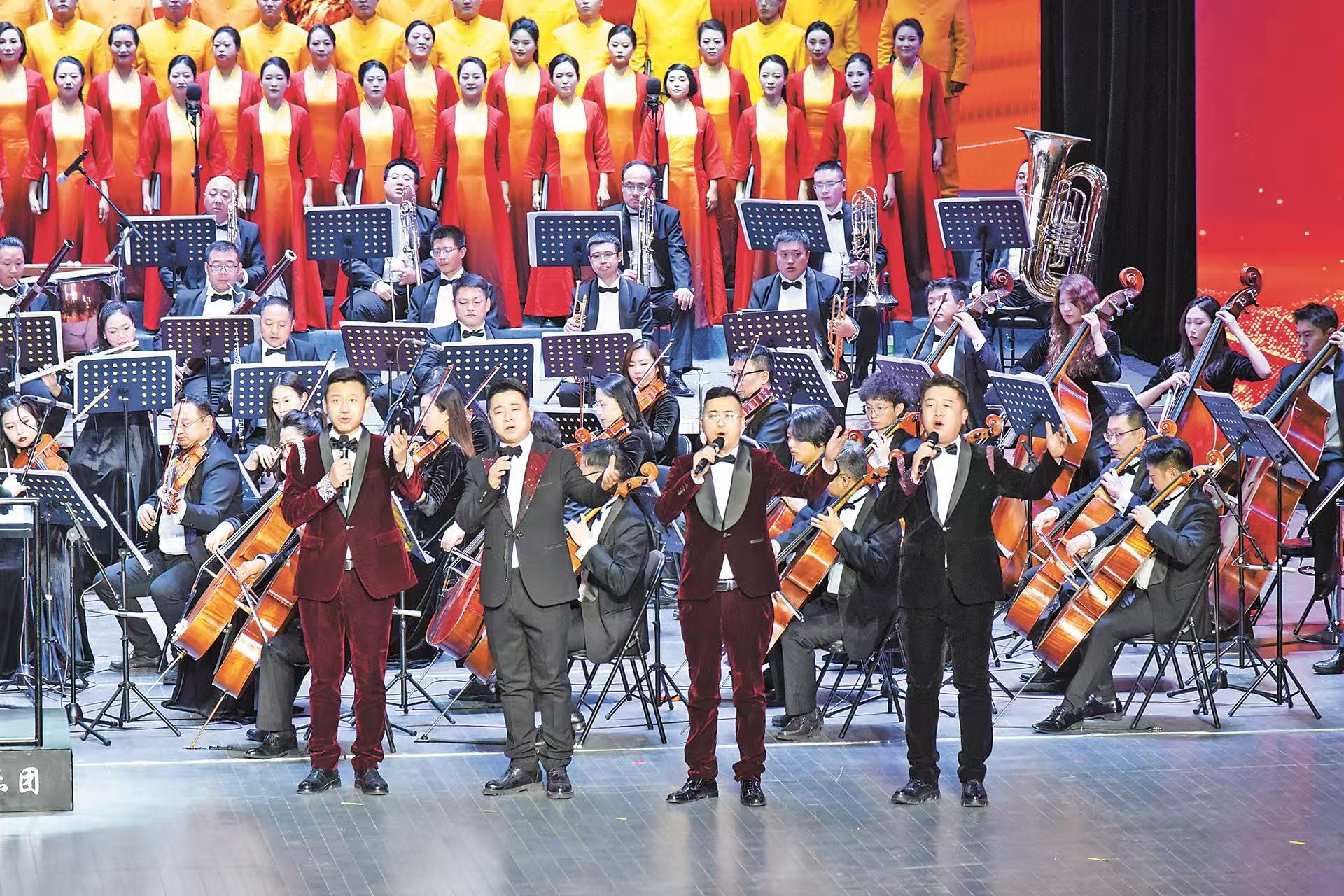 演出當(dāng)晚,慶陽(yáng)大劇院燈光璀璨,座無(wú)虛席。19時(shí)30分,隨著交響樂(lè)的恢宏序曲奏響,參與此次演出的甘肅省歌劇院交響樂(lè)團(tuán)和慶陽(yáng)市藝潤(rùn)教師合唱團(tuán)、東方紅小學(xué)童聲合唱團(tuán)、慶陽(yáng)市隴劇院等近300名演職人員盛裝登臺(tái),《南梁組歌》音樂(lè)會(huì)正式啟幕。文華獎(jiǎng)獲得者、一級(jí)演員毋攀,中國(guó)音樂(lè)金鐘獎(jiǎng)獲得者郝亮亮、王一鳳、毛一涵、張宇、袁野,甘肅省歌劇院薛鵬新、熊暉、孫立忠等18位藝術(shù)家輪番登臺(tái),傾情獻(xiàn)唱,現(xiàn)場(chǎng)一次次響起雷鳴般的掌聲。
