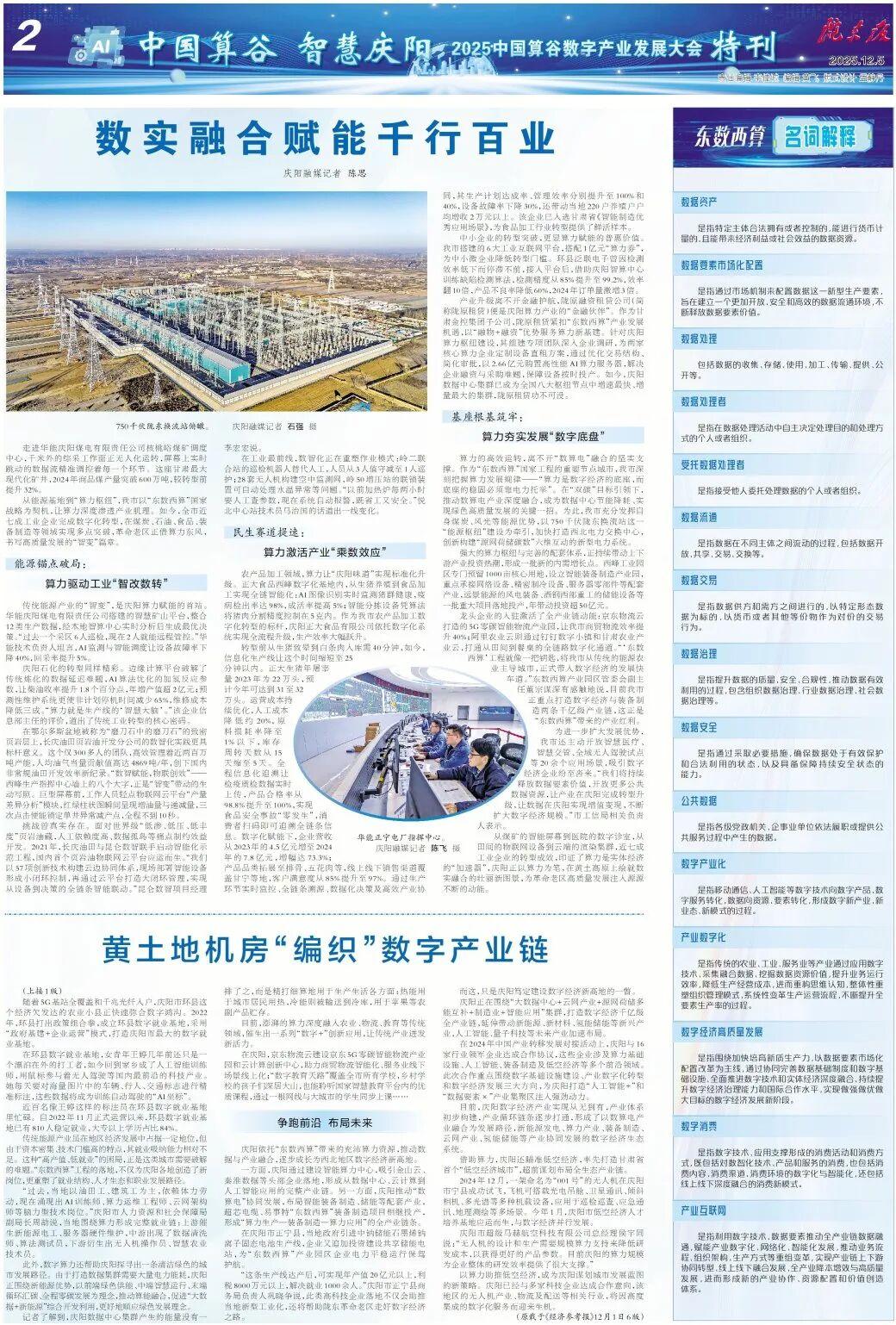 從能源基地到“算力樞紐”,慶陽市以“東數(shù)西算”國(guó)家戰(zhàn)略為契機(jī),讓算力深度滲透產(chǎn)業(yè)肌理。如今,全市近七成工業(yè)企業(yè)完成數(shù)字化轉(zhuǎn)型,在煤炭、石油、食品、裝備制造等領(lǐng)域?qū)崿F(xiàn)多點(diǎn)突破,革命老區(qū)正借算力東風(fēng),書寫高質(zhì)量發(fā)展的“智變”篇章。