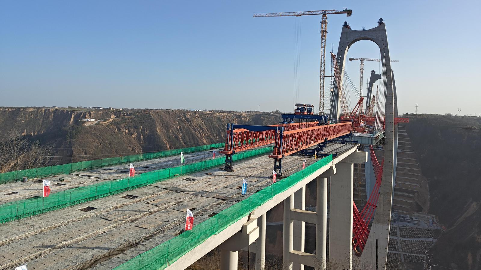 自11月8日首榀箱梁架設(shè)啟動以來,面對工期緊張、施工任務(wù)繁重、場地環(huán)境復(fù)雜等多重考驗,項目團隊攻堅克難、精準(zhǔn)施策,成功克服地形復(fù)雜、跨徑大、架梁縱橫坡坡度大及高低蓋梁等多項技術(shù)難題,歷時22天完成張鐵溝大橋40榀箱梁架設(shè)。