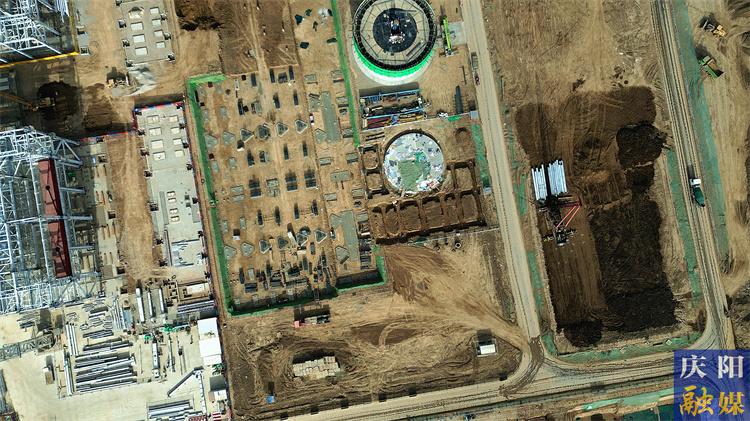 ▲甘肅能化慶陽2×660MW煤電項目施工現(xiàn)場航拍圖。