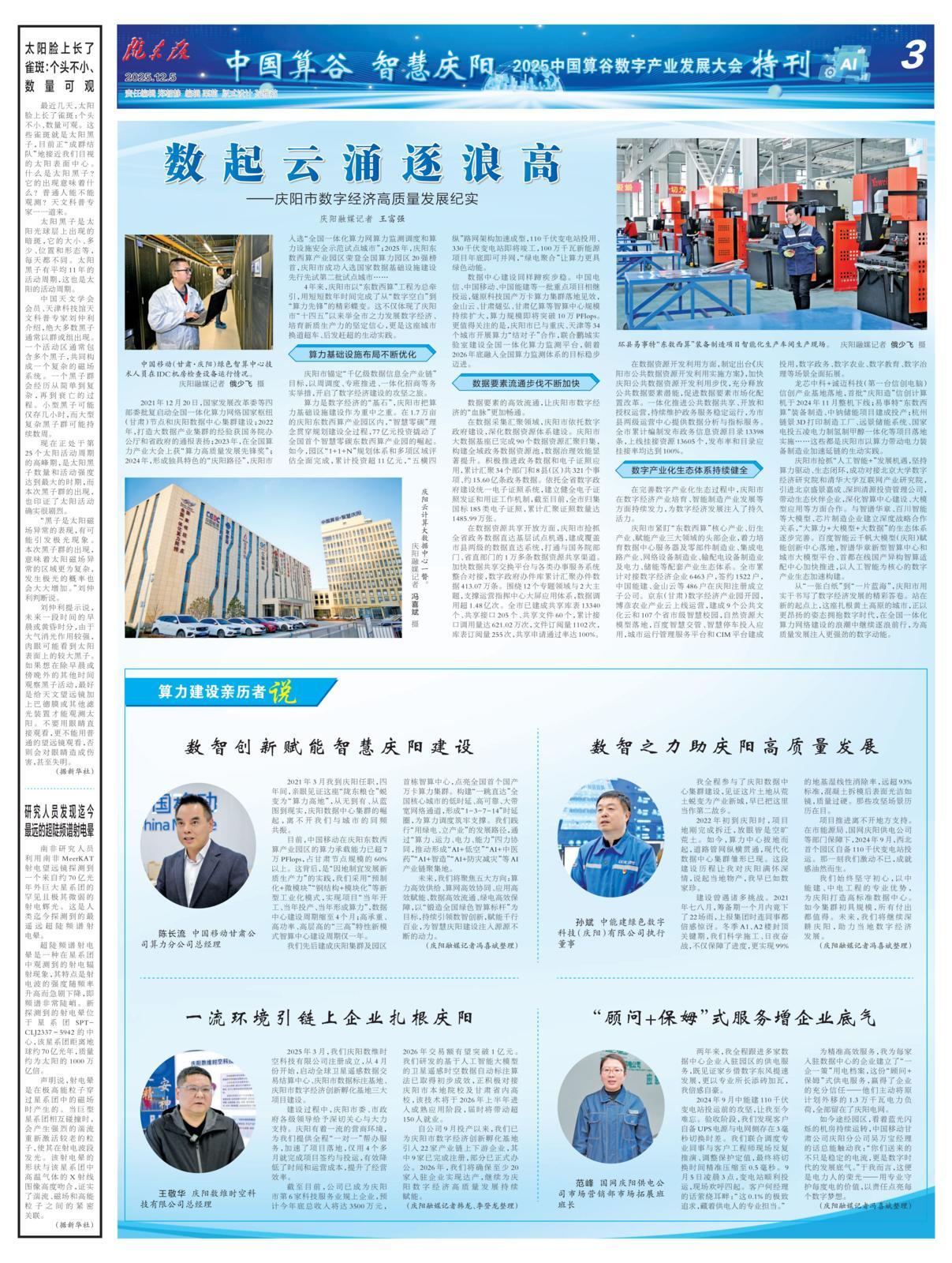 數(shù)智賦能產(chǎn)業(yè),算力決勝未來(lái)。今日起,“算力建設(shè)親歷者說(shuō)”系列故事正式上線!讓我們通過(guò)親歷者的視角,見(jiàn)證慶陽(yáng)以數(shù)智創(chuàng)新驅(qū)動(dòng)產(chǎn)業(yè)升級(jí)轉(zhuǎn)型的奮進(jìn)歷程,一同期待慶陽(yáng)在“東數(shù)西算”的壯闊征程中,續(xù)寫(xiě)更多高質(zhì)量發(fā)展的嶄新故事。