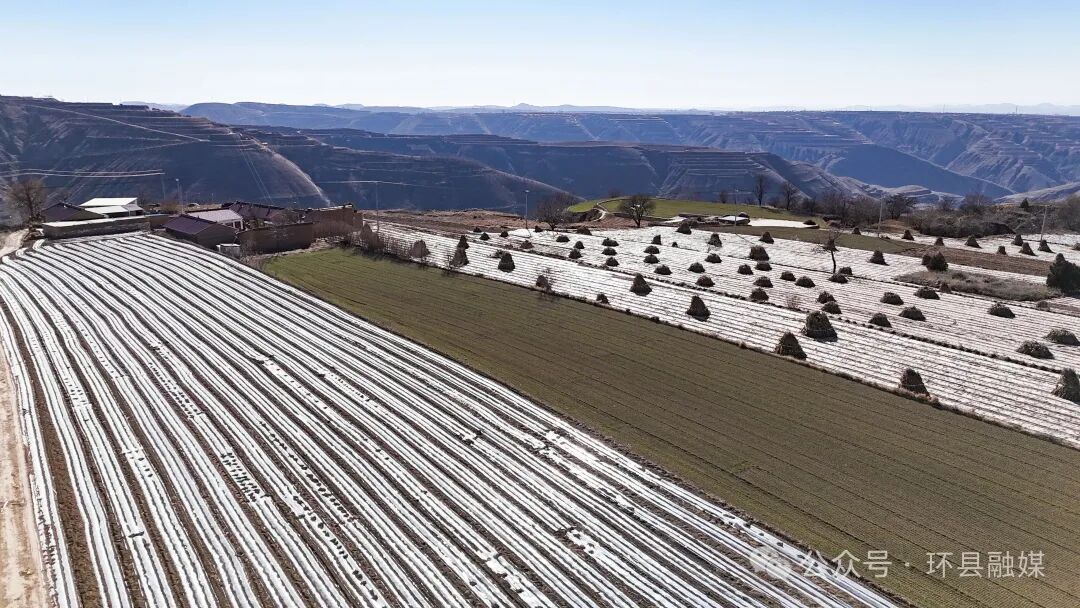 冬日環(huán)縣,山塬連綿,層層的梯田如指紋般鐫刻在大地上。一片片新鋪的秋覆膜在陽(yáng)光下熠熠生輝,猶如給黃土高原披上了銀色鎧甲。