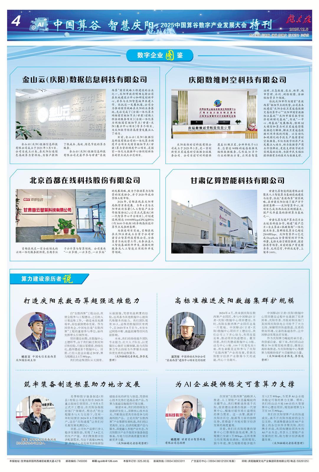 數(shù)智賦能產(chǎn)業(yè),算力決勝未來。今日起,“算力建設(shè)親歷者說”系列故事正式上線!讓我們通過親歷者的視角,見證慶陽以數(shù)智創(chuàng)新驅(qū)動(dòng)產(chǎn)業(yè)升級(jí)轉(zhuǎn)型的奮進(jìn)歷程,一同期待慶陽在“東數(shù)西算”的壯闊征程中,續(xù)寫更多高質(zhì)量發(fā)展的嶄新故事。