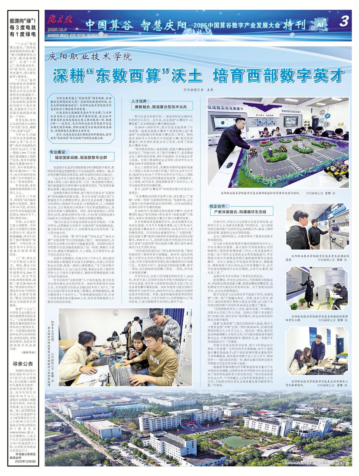 近日,記者走進(jìn)這座扎根隴東的職教高地,探尋其在“東數(shù)西算”時(shí)代浪潮下的特色發(fā)展之路。
