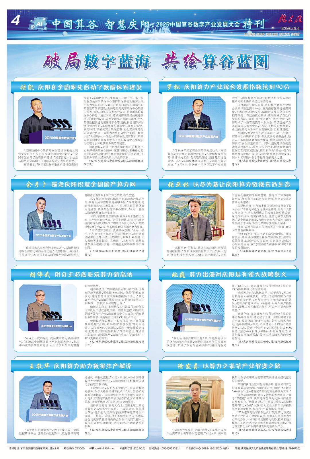 他建議慶陽以算力中心為核心,向上延伸服務器制造產(chǎn)業(yè)鏈,向下深耕“智慧政府”等應用場景。“慶陽智算已全國領(lǐng)先,需進一步加強政企協(xié)同,把超算、智算做優(yōu)做強?!焙鷤ノ鋱孕?,憑借自主芯底座與能源優(yōu)勢,慶陽必將在“東數(shù)西算”中書寫更精彩的篇章。