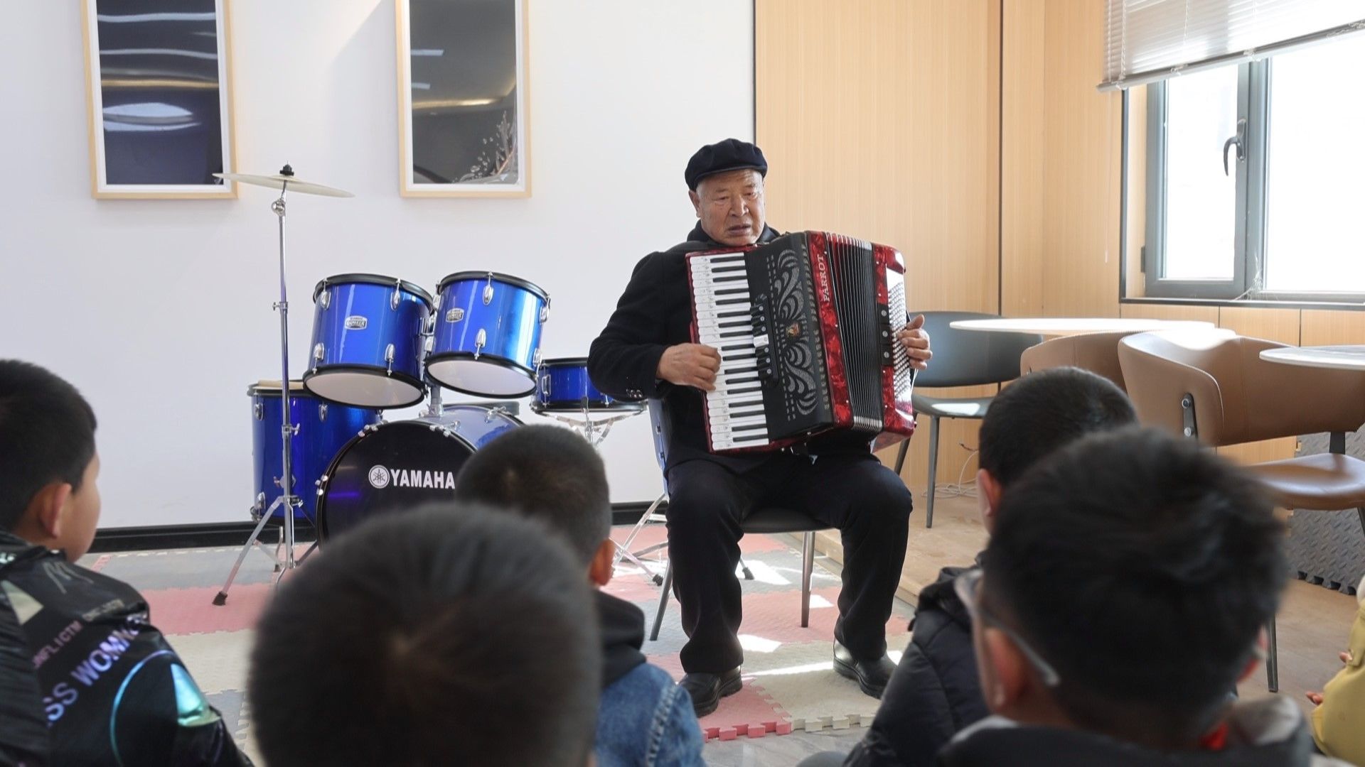 文化活動(dòng)區(qū)里,退休老人齊聚一堂,下棋打牌、演奏樂器,晚年生活多姿多彩。