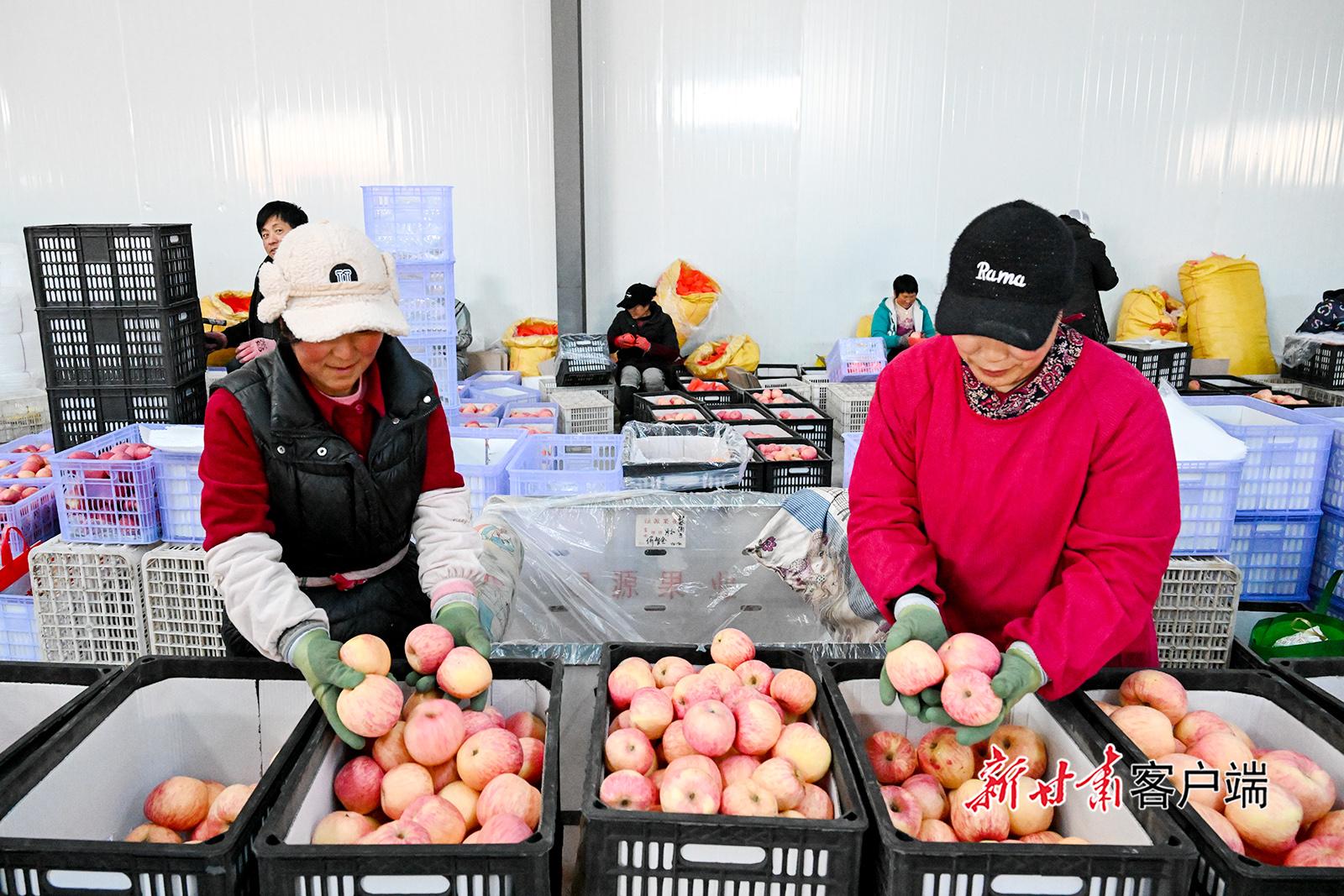11月28日,慶城縣白馬鋪鎮(zhèn)大掌柜果品儲(chǔ)藏基地內(nèi),工人忙著分揀蘋(píng)果。目前該基地已入庫(kù)蘋(píng)果2萬(wàn)噸,“鎖”住了蘋(píng)果的營(yíng)養(yǎng)和口感,實(shí)現(xiàn)了蘋(píng)果保鮮供應(yīng)。