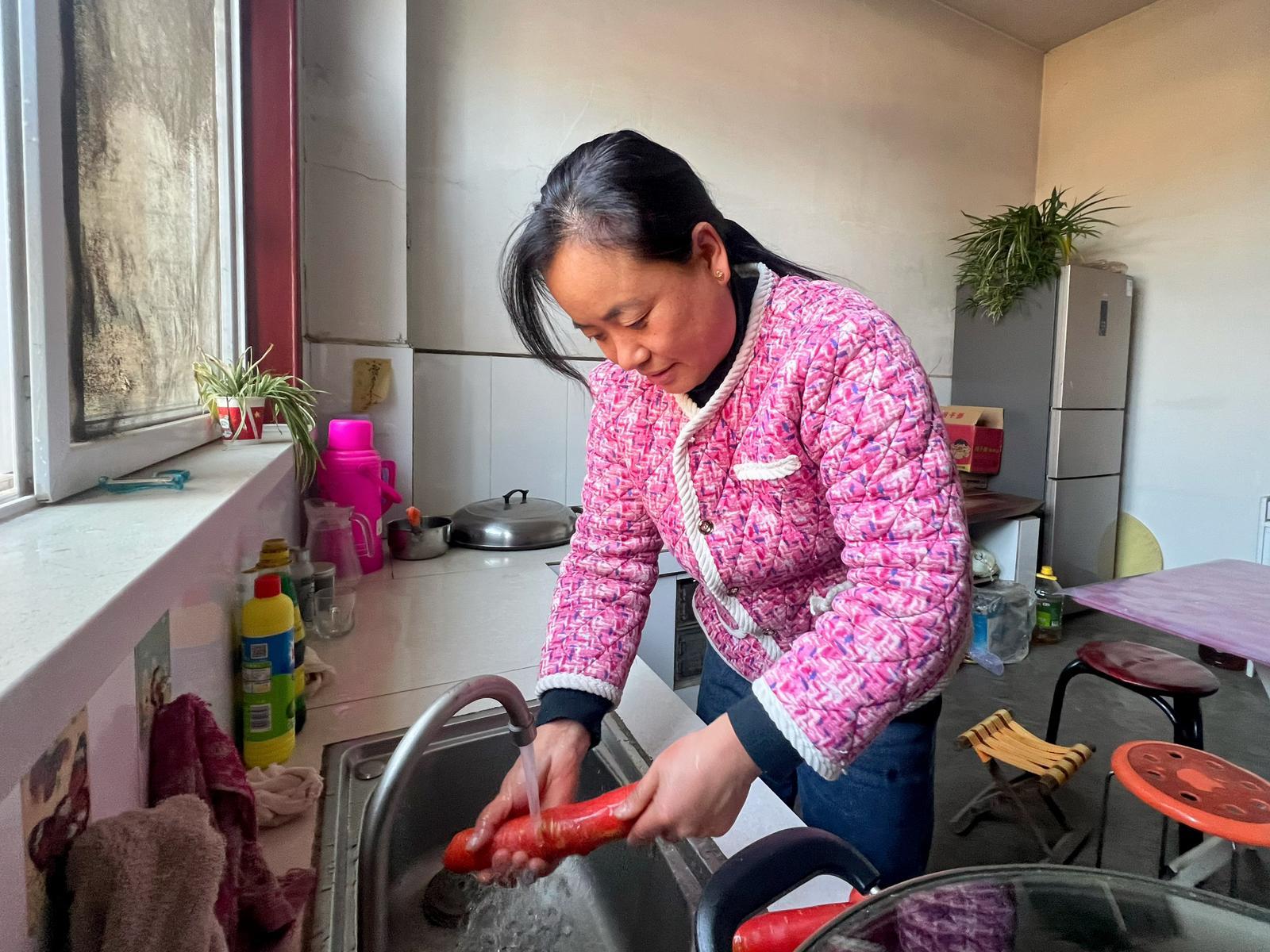 宮河鎮(zhèn)王錄村村民王寧寧正在洗菜。慶陽(yáng)融媒記者王華攝