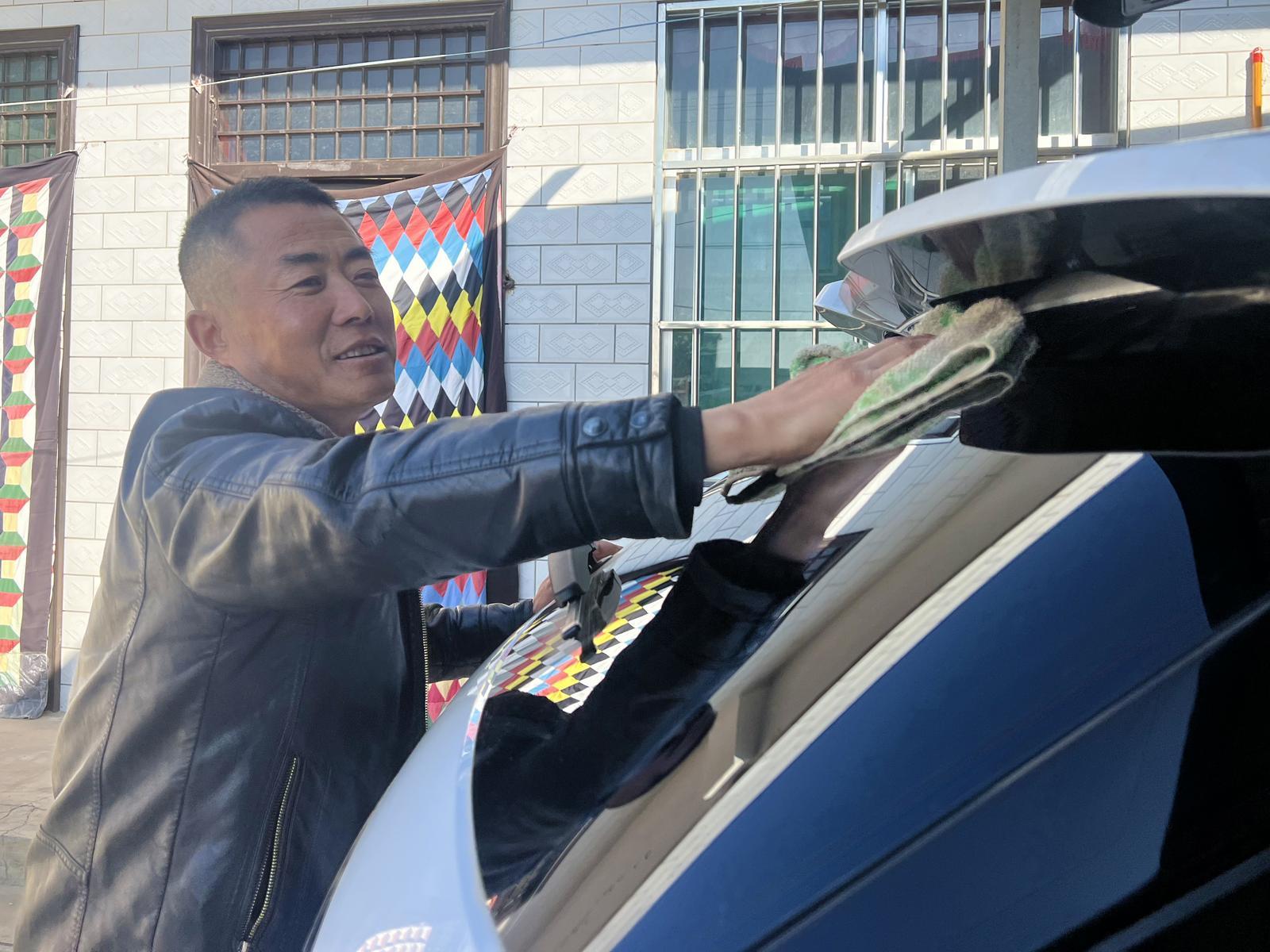 焦永峰正在擦自己買的新車。慶陽(yáng)融媒記者王華攝