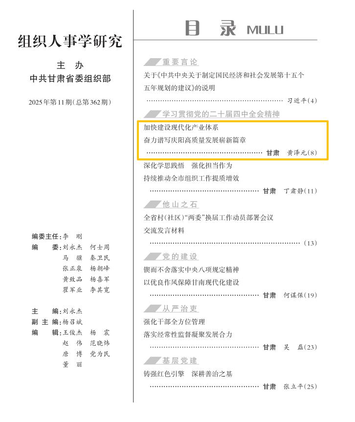 黨的二十屆四中全會是在向第二個百年奮斗目標(biāo)進軍新征程上舉行的一次十分重要的會議,繪就了未來五年發(fā)展新的宏偉藍圖,是夯實基礎(chǔ)、全面發(fā)力社會主義現(xiàn)代化的最新部署,必將對黨和國家事業(yè)發(fā)展產(chǎn)生重大而深遠的影響。深刻領(lǐng)會四中全會的中心主題,經(jīng)濟高質(zhì)量發(fā)展是核心,構(gòu)建現(xiàn)代化產(chǎn)業(yè)體系是關(guān)鍵。慶陽是革命老區(qū),是習(xí)近平總書記和黨中央深切關(guān)懷的地方,也是省委確定的“挑大梁、作標(biāo)桿”城市,我們既有落實黨中央構(gòu)建現(xiàn)代化產(chǎn)業(yè)體系的重大責(zé)任,也有建設(shè)現(xiàn)代化產(chǎn)業(yè)體系的資源稟賦,更有建設(shè)現(xiàn)代化產(chǎn)業(yè)體系的迫切需求。慶陽貫徹落實黨的二十屆四中全會精神,必須牢牢抓住構(gòu)建現(xiàn)代化產(chǎn)業(yè)體系這個核心和關(guān)鍵,精心謀劃,全力推動,高效落實。