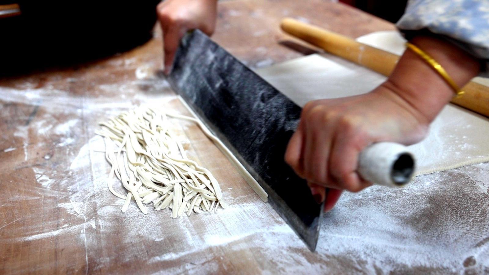 王霞是土生土長的華池人,她在華池縣縣城開了一家蕎面面館,每天客流量可觀,收入也穩(wěn)定。她靠著自己精湛的剁蕎面手藝,撐起了一家人的生活。王霞告訴我們“從小就吃蕎面,從我老奶奶手里都學(xué)出來了。一代一代傳下來的,以后結(jié)了婚,自己想創(chuàng)業(yè),就想著咱們喬川的蕎麥很地道,所以我們就開了自己的小店。感覺這個還可以,維持我們這一家人的生活。”王霞的蕎面面館,在華池還有不少,他們都是依托華池優(yōu)質(zhì)的蕎麥面粉,開面館養(yǎng)家糊口?!霸蹅儐檀ㄏ裎疫@樣走出來的人還有很多,慶陽、西峰都有開店的,環(huán)縣、華池開店的都很多,都是咱們喬川的特色蕎面?!蓖跸夹θ轁M面地給我介紹起她的生意經(jīng)。王霞所說的很多同行,他們都參加了“華池蕎(巧)匠”培訓(xùn),培訓(xùn)通過后,在政府的扶持下陸陸續(xù)續(xù)開起了自己的面館。