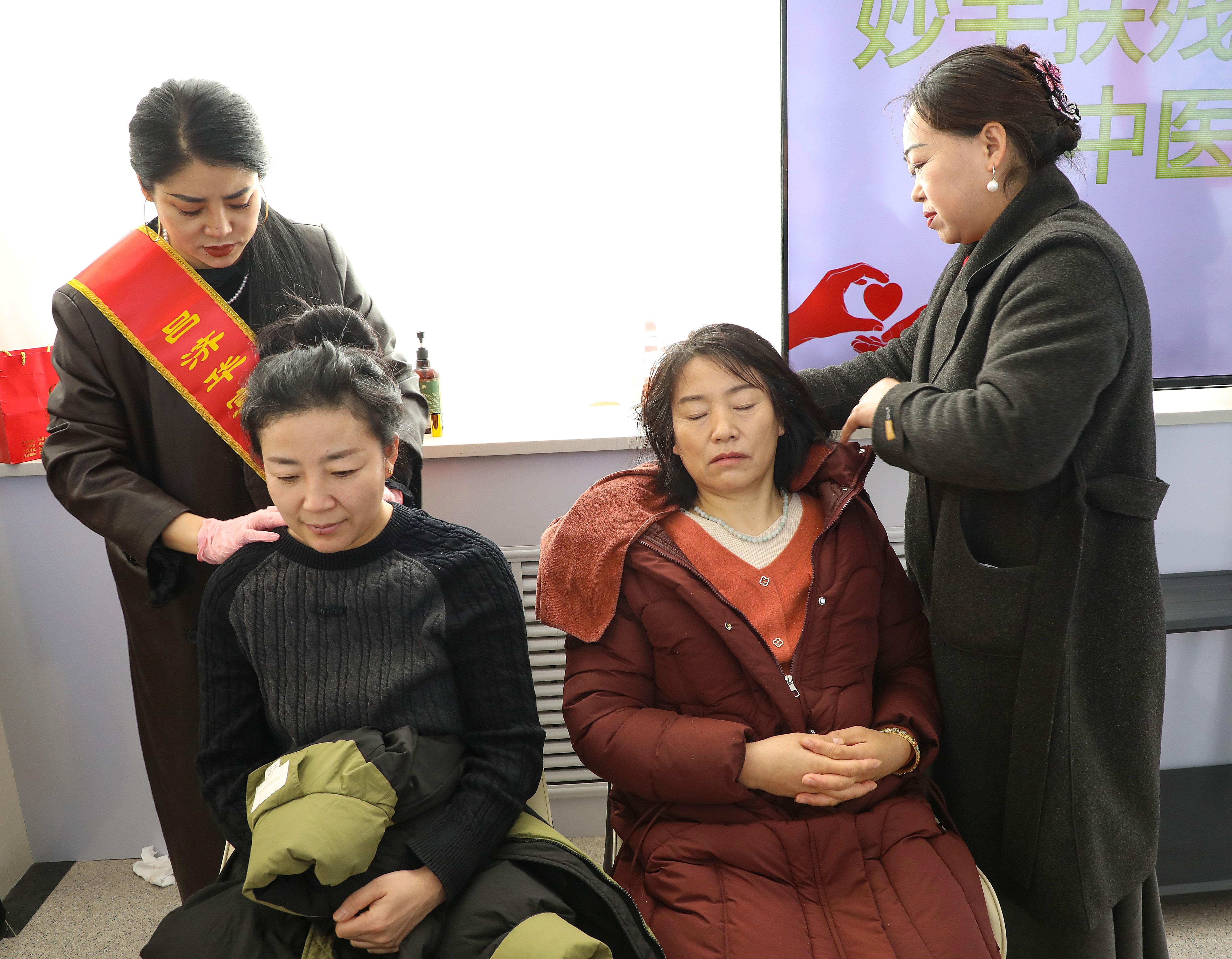 同時,社區(qū)邀請專業(yè)中醫(yī)團(tuán)隊開展康養(yǎng)助殘服務(wù),為殘疾人朋友提供免費的中醫(yī)按摩和義診,針對大家的身體狀況給出個性化康復(fù)建議,助力他們更好地調(diào)理身體。