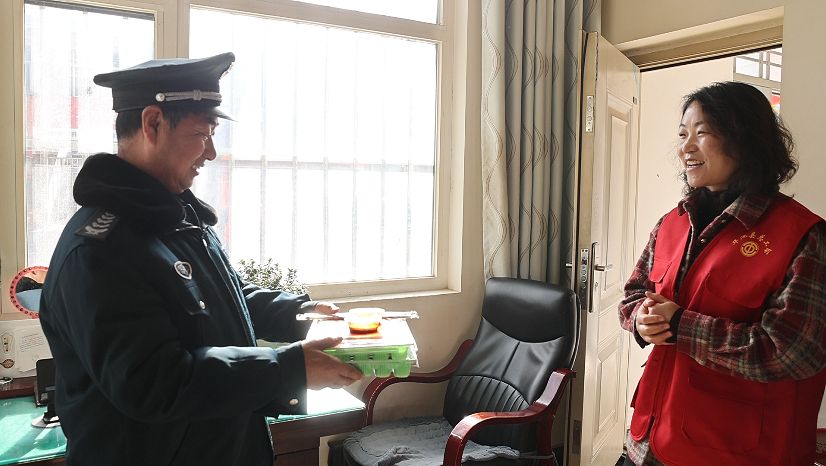 華池縣公安局交管大隊(duì)柔遠(yuǎn)執(zhí)勤組的王璽權(quán)接過熱氣騰騰的餃子,一邊連聲向工作人員道謝,一邊動情地說:“今天收到總工會送來的這份暖心餃子,我們心里既開心又溫暖!” 另一邊,剛結(jié)束清掃工作的環(huán)衛(wèi)工人王彩花,雙手捧著溫?zé)岬娘溩?,臉上漾起樸?shí)的笑容,滿足地說道:“這餃子,吃著真香!”