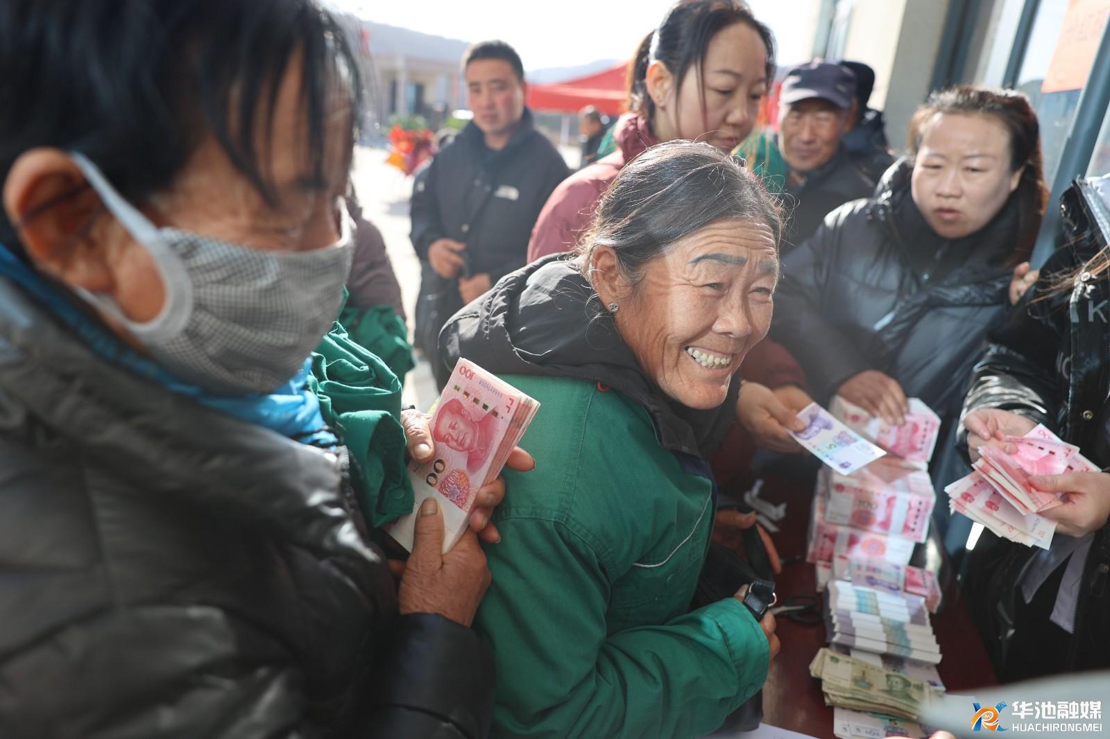 分紅現(xiàn)場秩序井然,藥農(nóng)們依次排隊(duì)核對信息、領(lǐng)取分紅。沉甸甸的分紅款,既是一年辛勤付出的豐厚回報(bào),更是對未來美好生活的熱切期許?!拔以诤惴楣局饕N植藥材,學(xué)了不少技術(shù),這次分紅能拿到31192元。公司對我們工人特別好,中午管飯還車接車送,我就想多掙點(diǎn)錢,給家里增加收入?!比A池縣五蛟鎮(zhèn)劉家灣村村民王秀琴拿著分紅款,喜悅之情溢于言表。