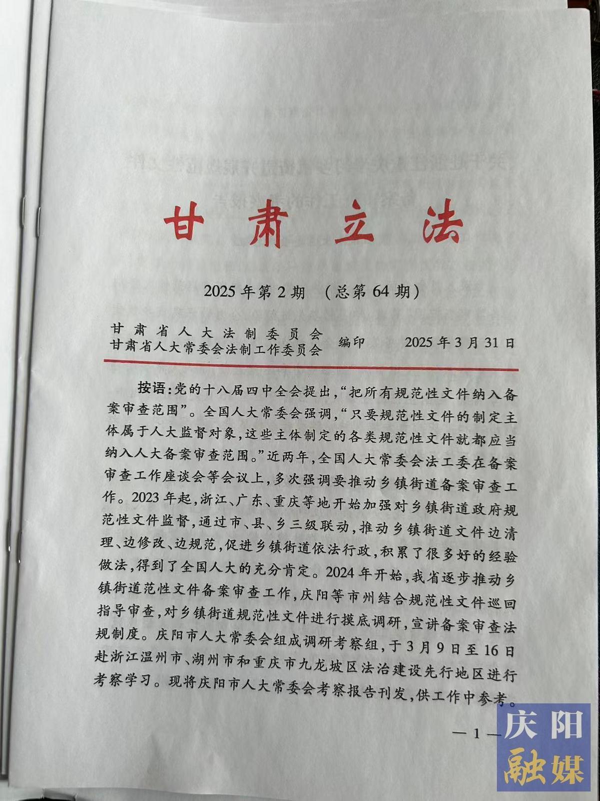 根據(jù)黨中央關(guān)于“把所有規(guī)范性文件需納入備案審查范圍”的重大決策部署,慶陽市人大常委會通過構(gòu)建“市級主抓-縣(區(qū))主導(dǎo)-鄉(xiāng)鎮(zhèn)主責”三級聯(lián)動責任體系,創(chuàng)新“制度重塑+數(shù)字賦能+巡回糾錯”工作機制,以“三集中、一反饋”為重點,著力破解基層規(guī)范性文件識別難、備案少、審查弱等突出問題,探索形成了一套具有慶陽特色的基層備案審查工作模式,為提升基層治理法治化水平提供了實踐樣本。