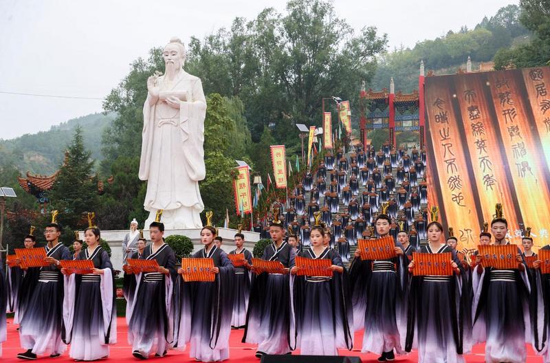 9月28日,甘肅·慶陽岐黃文化論壇拜謁醫(yī)祖岐伯活動誦讀《黃帝內(nèi)經(jīng)》。慶陽融媒記者 俄少飛 攝