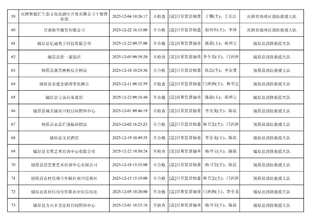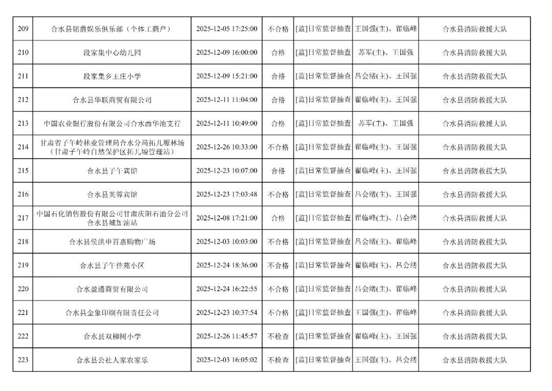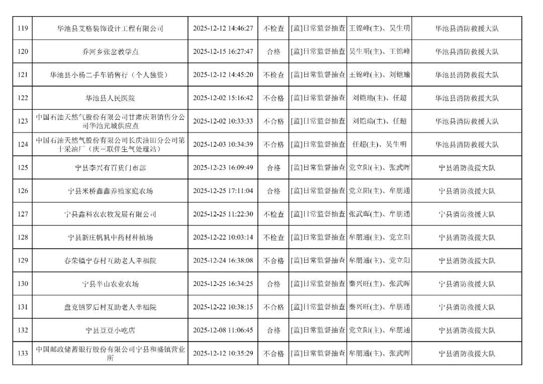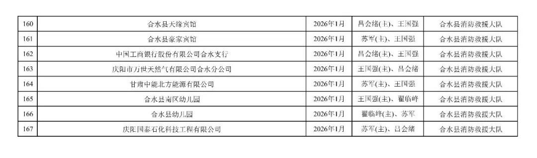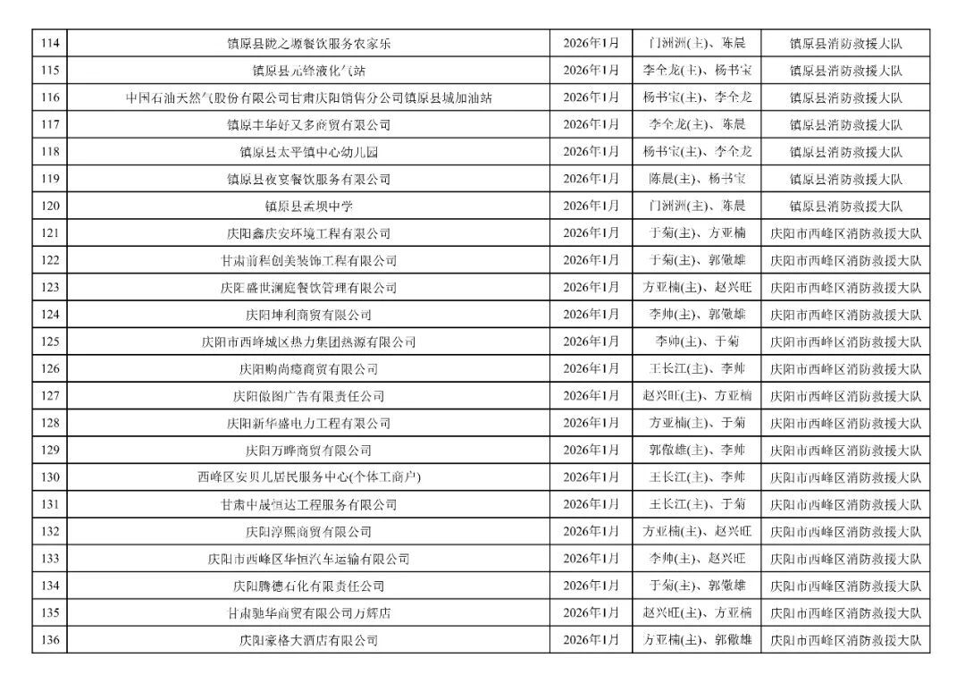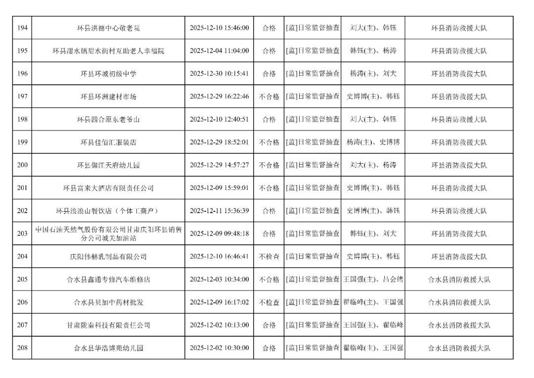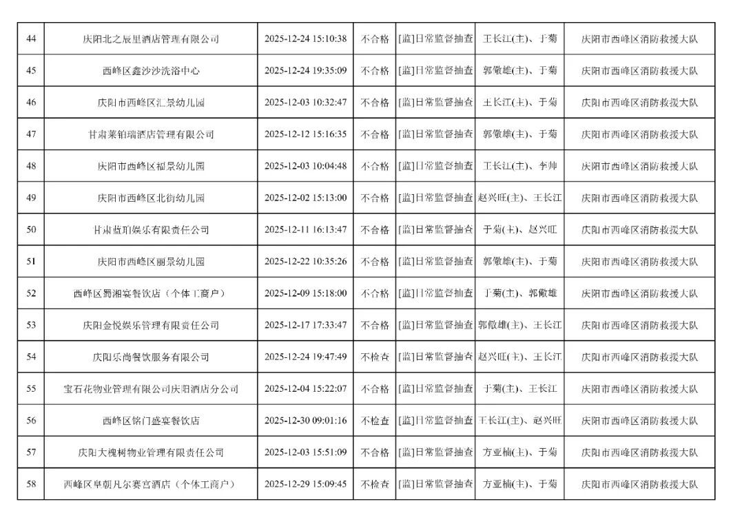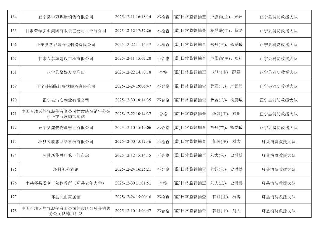 為貫徹落實(shí)《消防救援局關(guān)于全面推行“雙隨機(jī)、一公開”消防監(jiān)管工作的通知》(應(yīng)急消〔2019〕241號),認(rèn)真組織實(shí)施“雙隨機(jī)、一公開”消防監(jiān)管工作,現(xiàn)將2025年12月份“雙隨機(jī)、一公開”消防監(jiān)督檢查結(jié)果及2026年1月份監(jiān)督抽查計劃公示如下:
