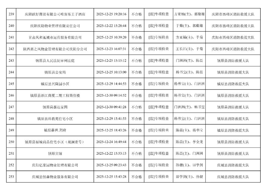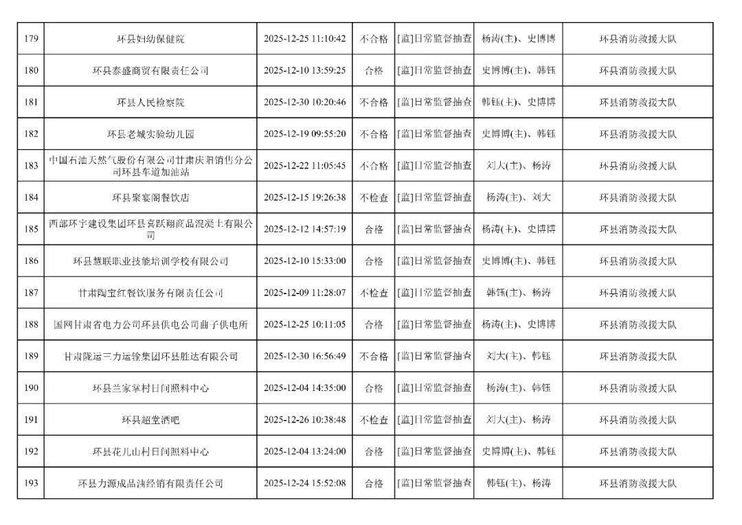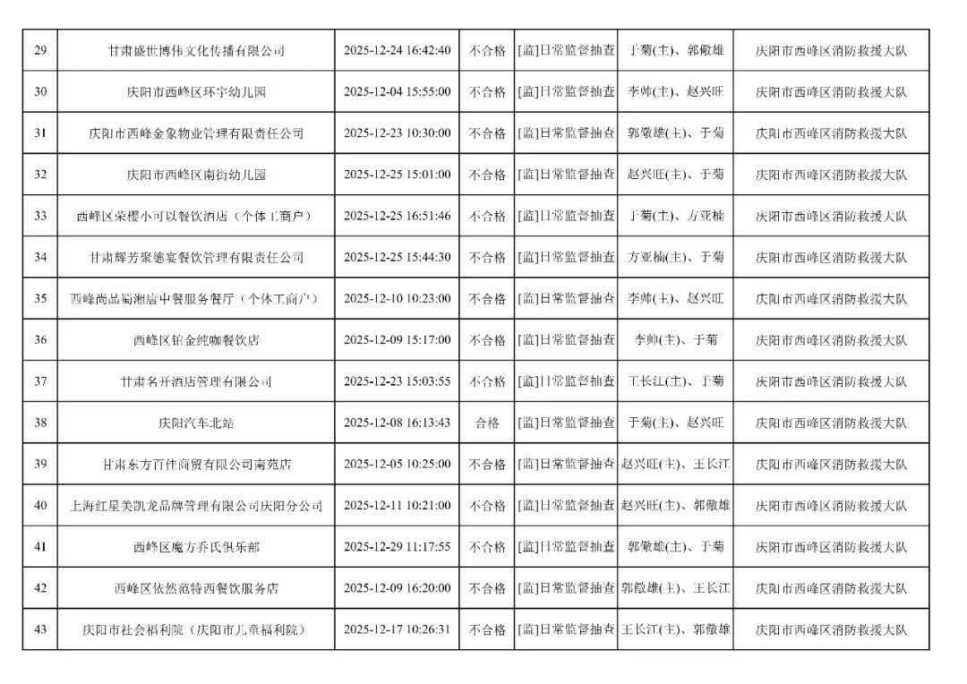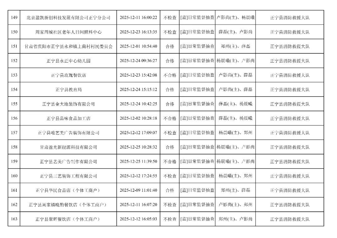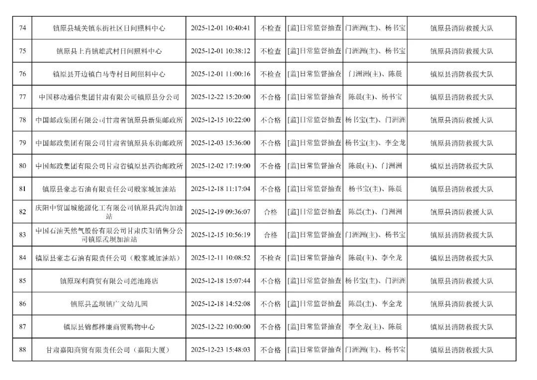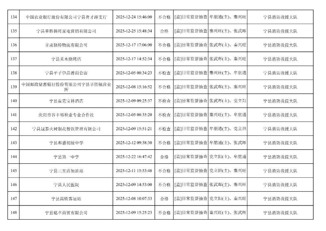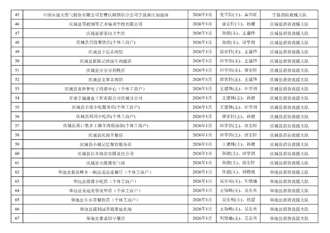 為貫徹落實(shí)《消防救援局關(guān)于全面推行“雙隨機(jī)、一公開”消防監(jiān)管工作的通知》(應(yīng)急消〔2019〕241號),認(rèn)真組織實(shí)施“雙隨機(jī)、一公開”消防監(jiān)管工作,現(xiàn)將2025年12月份“雙隨機(jī)、一公開”消防監(jiān)督檢查結(jié)果及2026年1月份監(jiān)督抽查計劃公示如下: