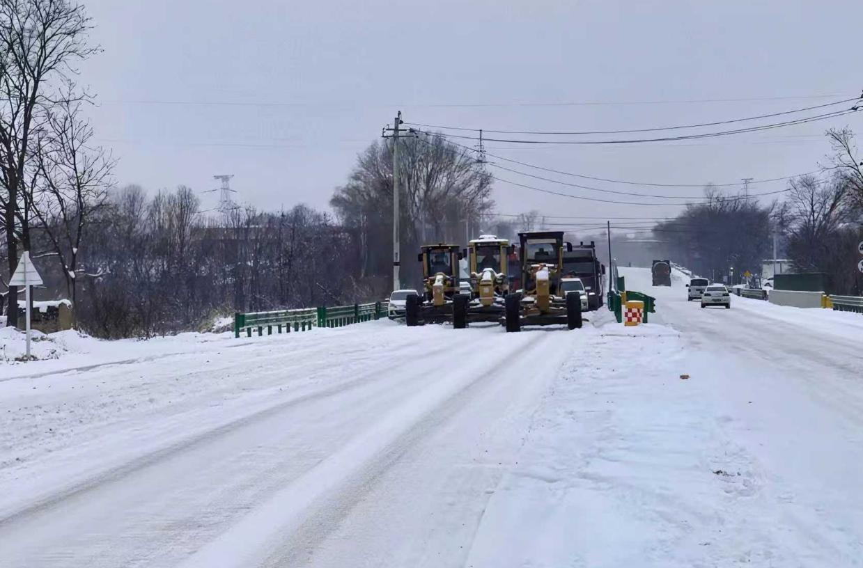 面對(duì)極端天氣,項(xiàng)目部主動(dòng)對(duì)接地方政府與交通部門,快速制定除雪方案,統(tǒng)籌調(diào)配5臺(tái)平地機(jī)、3臺(tái)輕卡車及90噸融雪鹽,按照“機(jī)械為主、人工為輔、科學(xué)撒布”的原則,迅速趕往現(xiàn)場(chǎng),在零下10攝氏度的嚴(yán)寒中,5臺(tái)平地機(jī)破冰清雪,秩序井然,輕卡車上工作人員精準(zhǔn)撒布融雪鹽;在地方政府與交通部門的協(xié)作下,項(xiàng)目團(tuán)隊(duì)全程盯控除雪作業(yè),并引導(dǎo)來往車輛有序、安全通行。