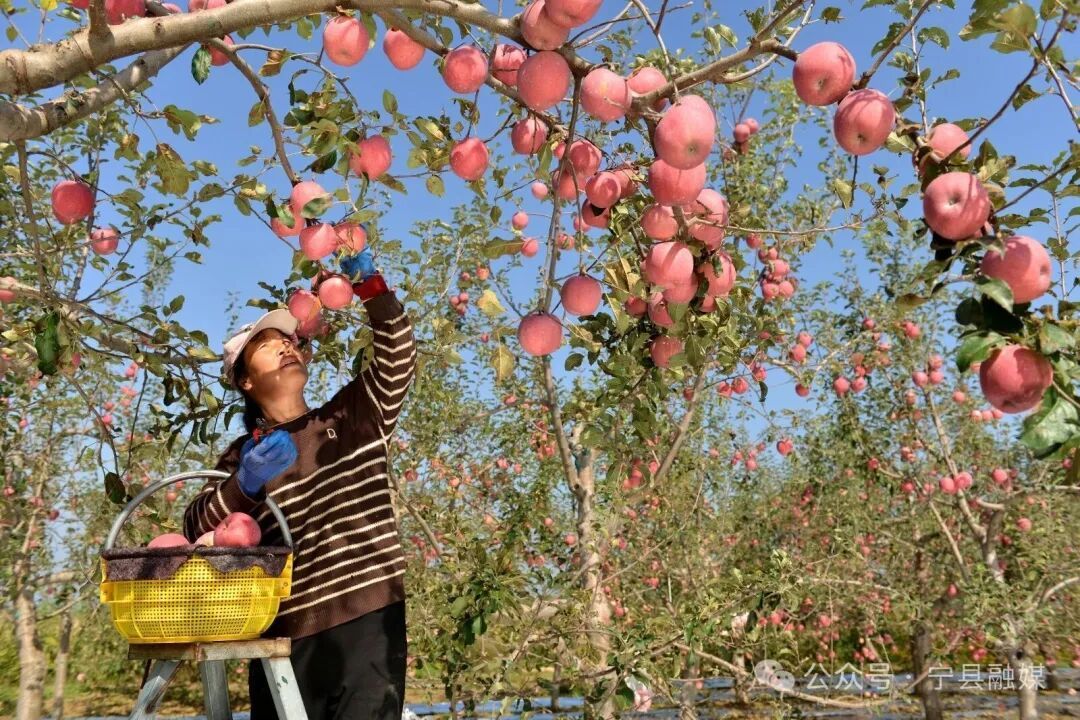 蘋果產(chǎn)業(yè)是寧縣的“富民支柱”。寧縣重點以“改品種、提品質(zhì)、延鏈條”為核心,通過推廣高定位、高科技、高效益,苗木良種化、栽培矮密化、生產(chǎn)機械化、水肥一體化、產(chǎn)品標準化“三高五化”的“寧縣模式”,建成全國最大矮化自根砧蘋果基地和果園大數(shù)據(jù)中心,創(chuàng)建國家現(xiàn)代農(nóng)業(yè)產(chǎn)業(yè)園。同時,通過防霜凍花期抗凍試驗和蘋果“期貨+價格保險”,全縣果園面積穩(wěn)定在25萬畝(矮化密植11萬畝),產(chǎn)量50萬噸、產(chǎn)值36億元,還榮獲“甘味”品牌1個,建設果品冷庫、氣調(diào)庫和果蔬保鮮庫47座,高標準分揀及商品化處理線3條,引培加工企業(yè)16家。